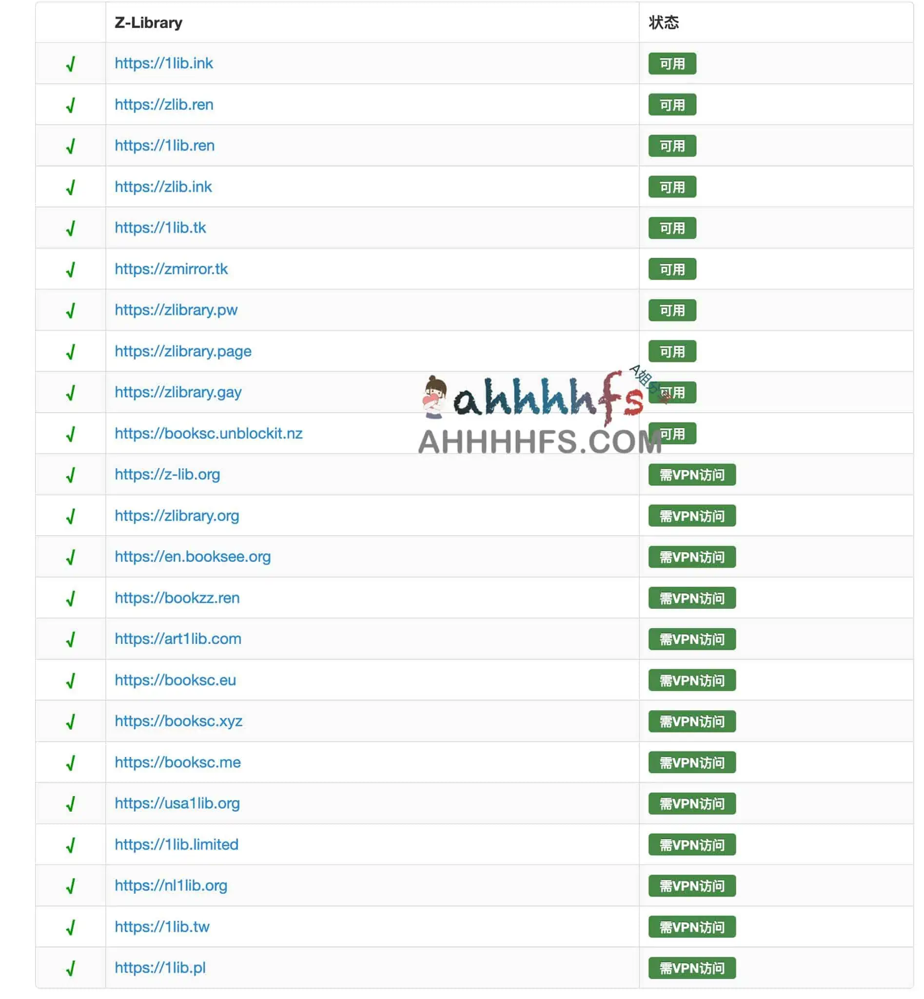 今天,Z-Library被封了,大部分地址都用不了,不过A姐发现了一个Z-Library最新可用地址,网站自动实时自动检测并更新Z-Library镜像的可用网址链接,由于每一个人的网络环境不大相同,不一定所有网址都能在你所在的位置访问。通常情况下,一半以上是有效的,网站的Z-Library最新可用地址每1小时刷新一次,低调用,且用且珍惜。