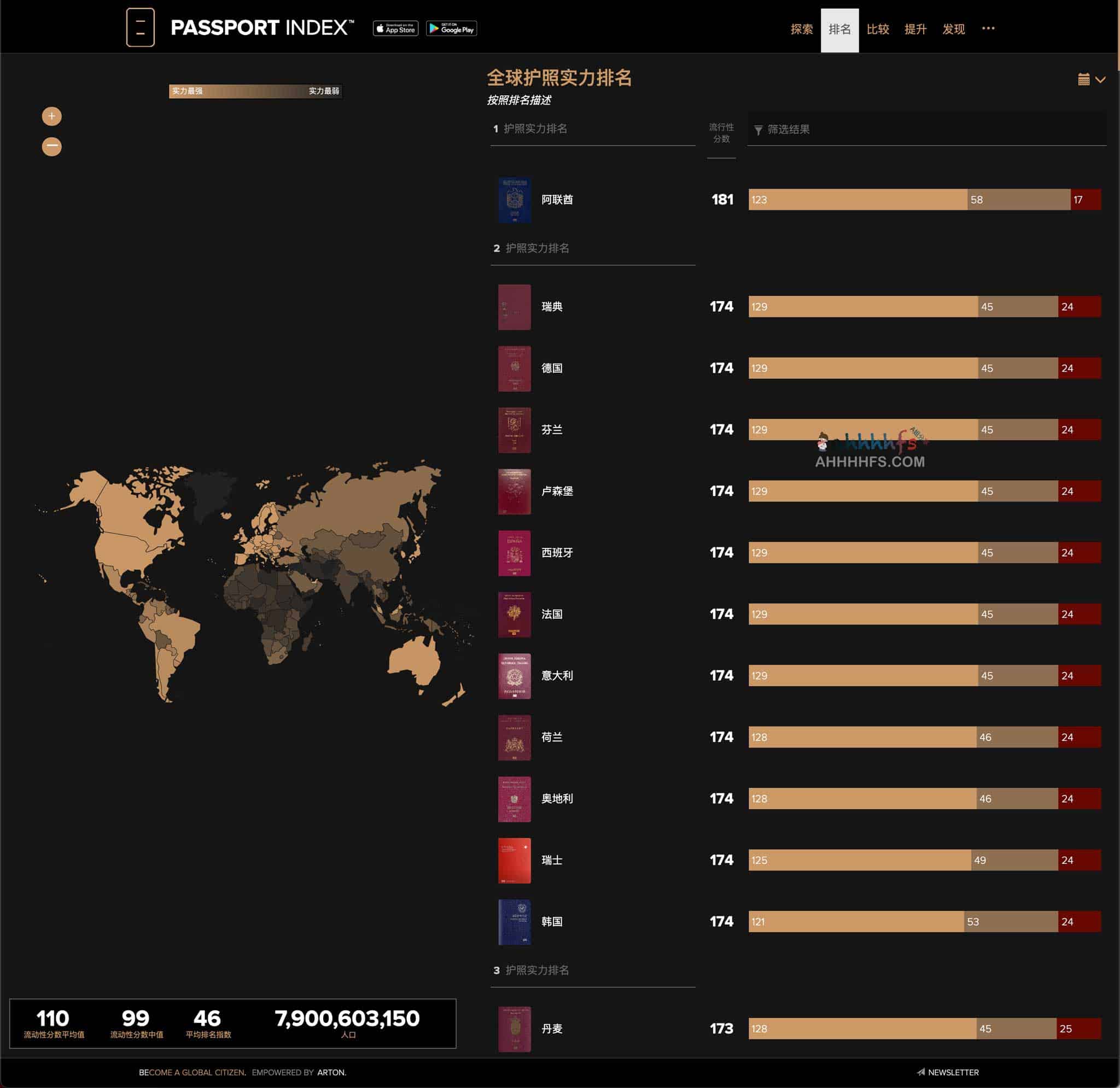 护照指数(英语:Passport Index),是一个由Arton Capital机构所运营的护照排名网站。护照指数也是全球唯一提供世界各国护照实力即时排名的网站,排名将会在每次公布新免签计划或颁布签证变更时进行更新。