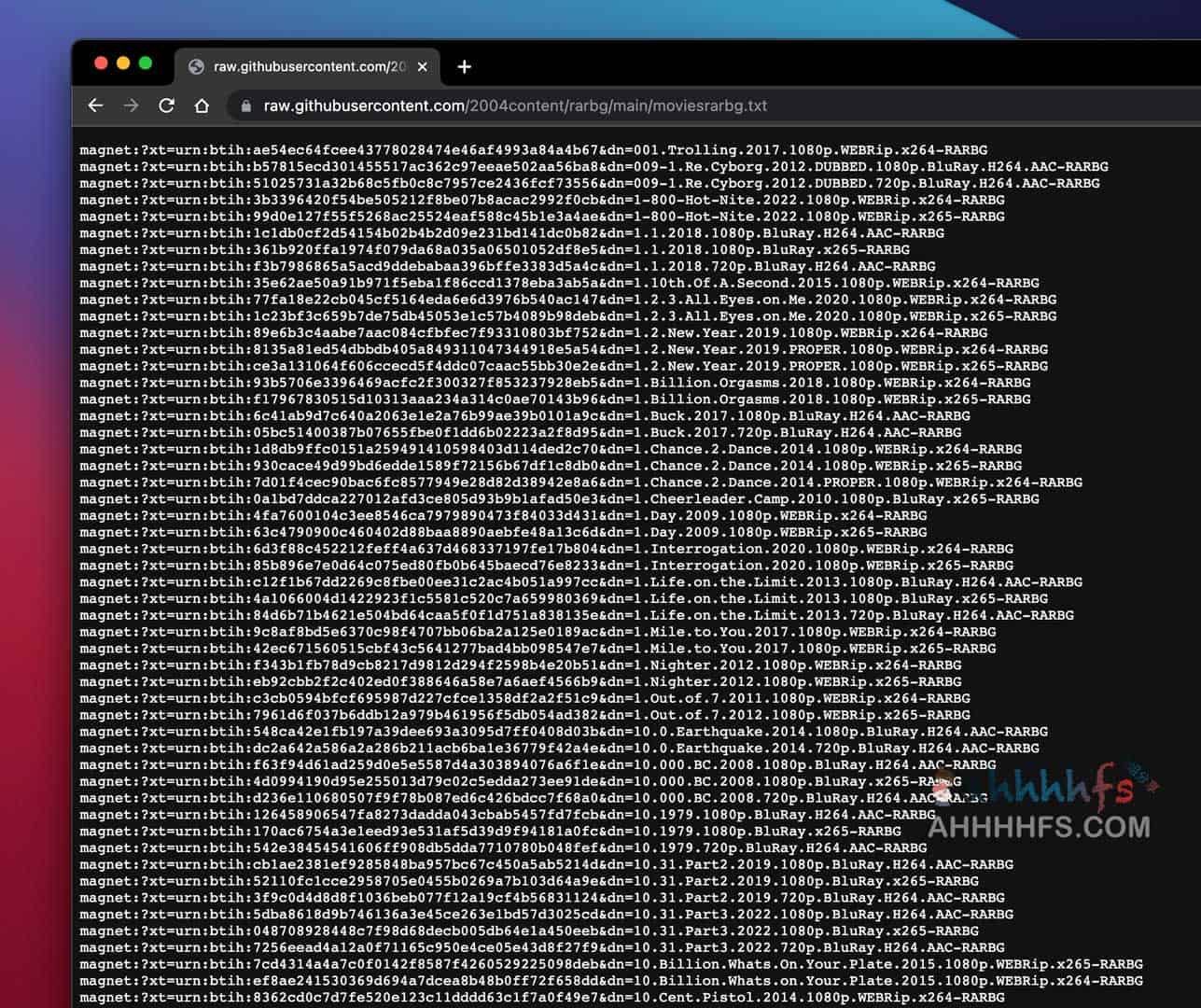 RARBG是一个成立于2008年的网站,它提供BT种子文件和磁力链接,使用BitTorrent协议实现文件共享,不过在最近,该站发布公告称因为团队成员离世、陷入战争状态,以及电费上涨、通货膨胀等原因关闭该站,非常不错的一个磁力资源网址,不过好在有用户使用Python脚本爬取了网址做了RARBG磁力链接备份,纯纯的磁力链接,非常贴心,而且还含有名字,备份存档放在GitHub上面,感兴趣且硬盘够大的用户可以直接使用。