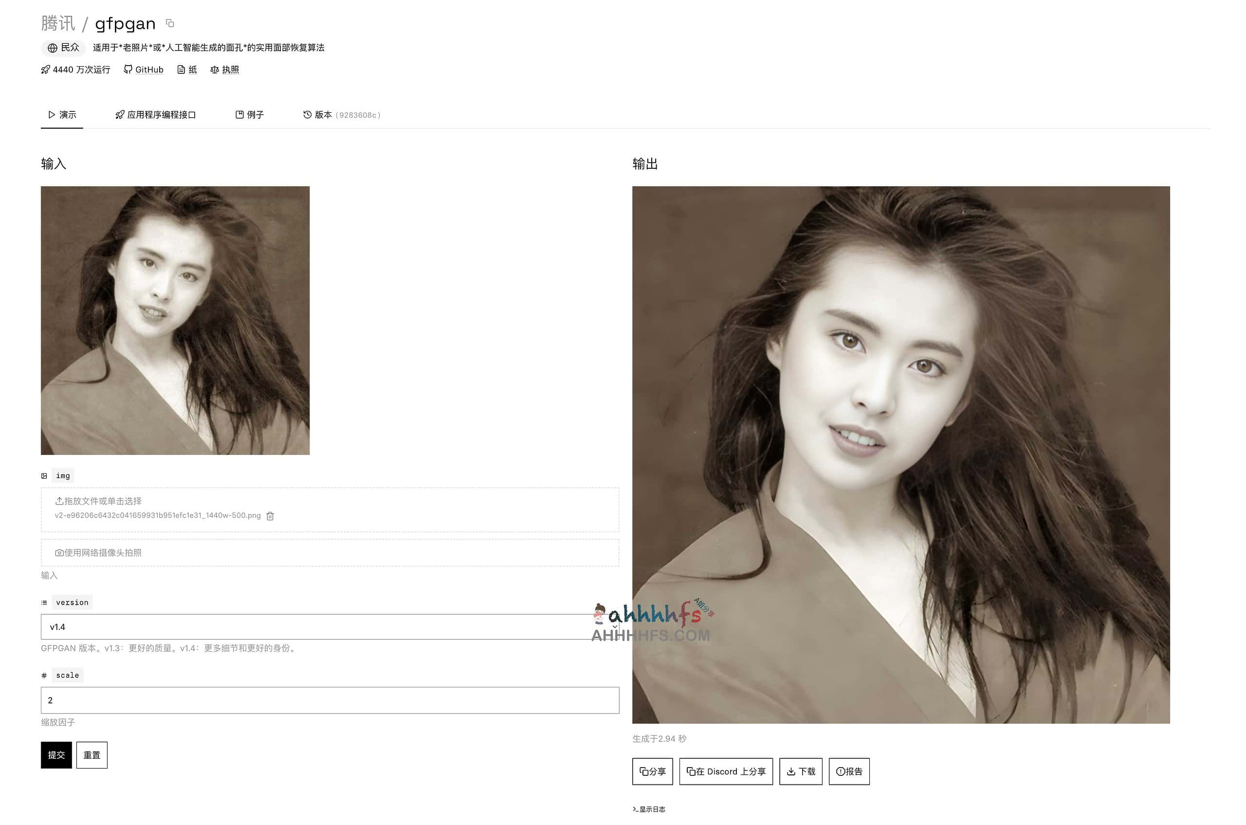 演示地址:https://replicate.com/tencentarc/gfpgan