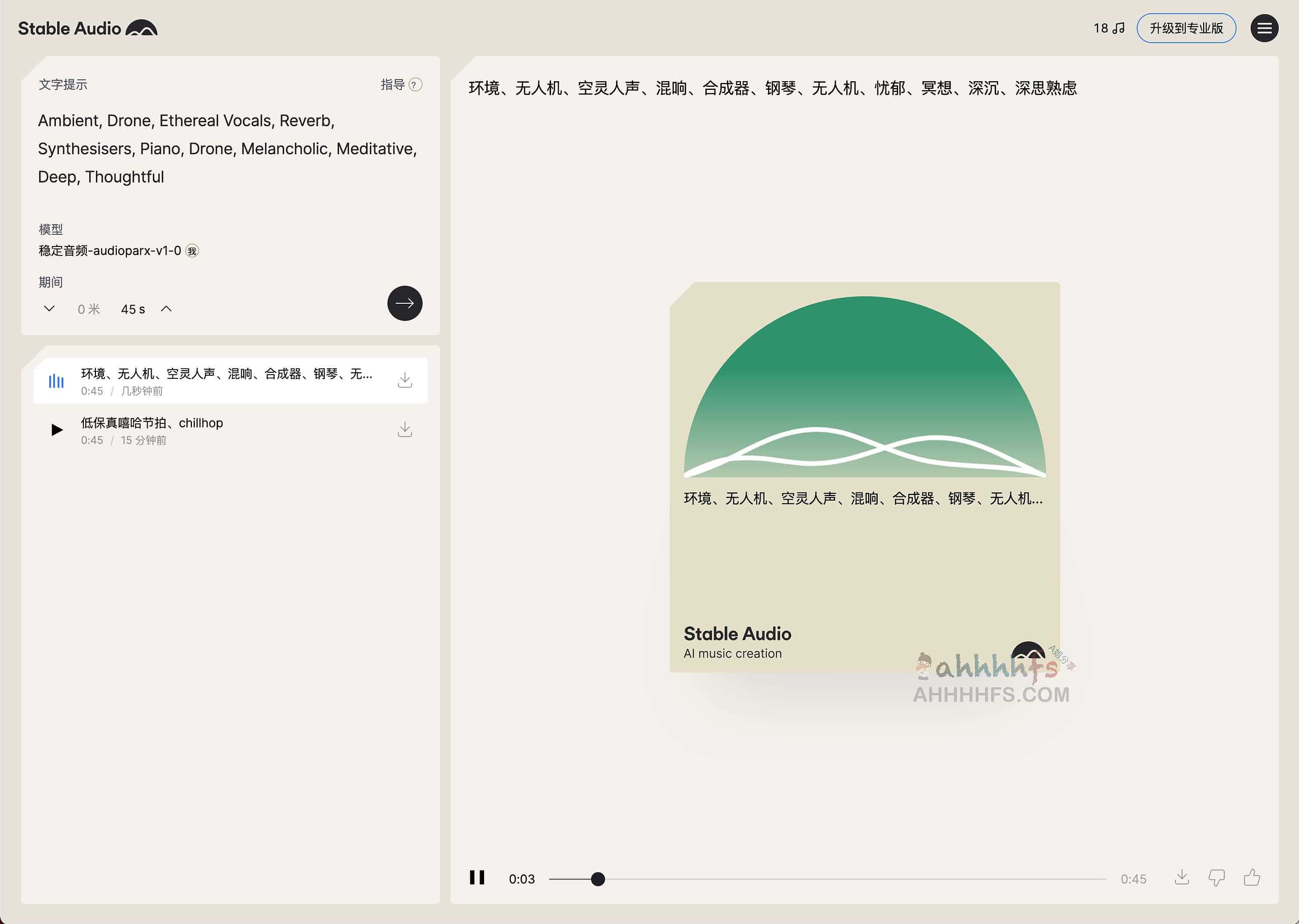 Stable Audio是一款由Stability AI 推出的免费人工智能AI音乐生产器,用于音乐和声音效果的生成人工智能,根据用户提供的文本提示生成音乐和声音效果,无论是初学者还是专业人士,都可以使用人工智能制作原创音乐和音效,而且还支持商用。Stable Audio 背后的 AI 模型是根据我们的合作伙伴AudioSparx 的音乐进行训练的。
