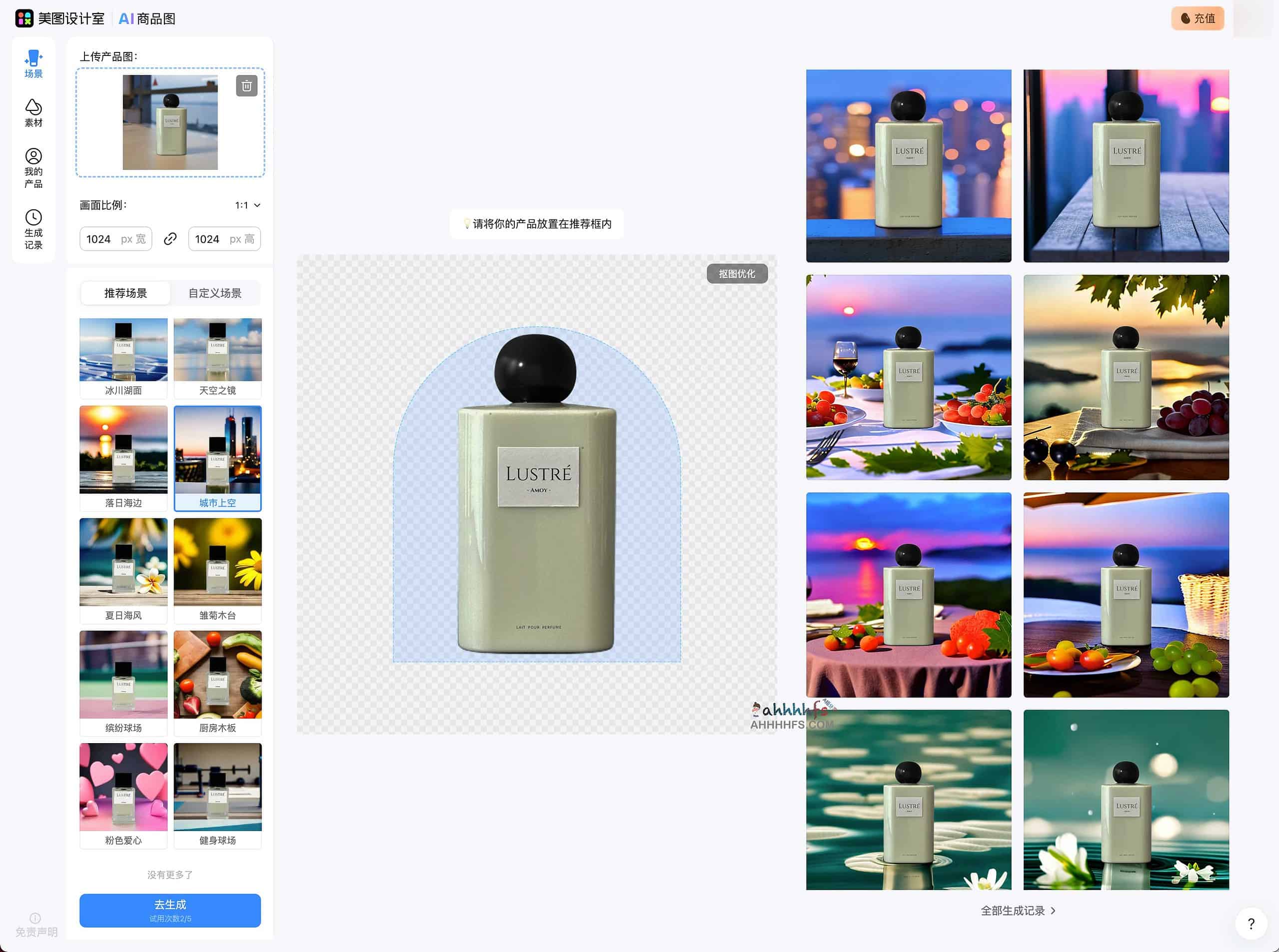 AI商品图是美图设计室推出的一款在线AI商品图一键生成工具上传商品图片,使用AI即可生成海量的商品图,内置多种商品场景,也可以通过文字描述生成自定义场景,一键输出商品摄影图,无需拍摄与后期。简单好用,低成本高效率,可用于电商推广、市场宣传等众多场景。