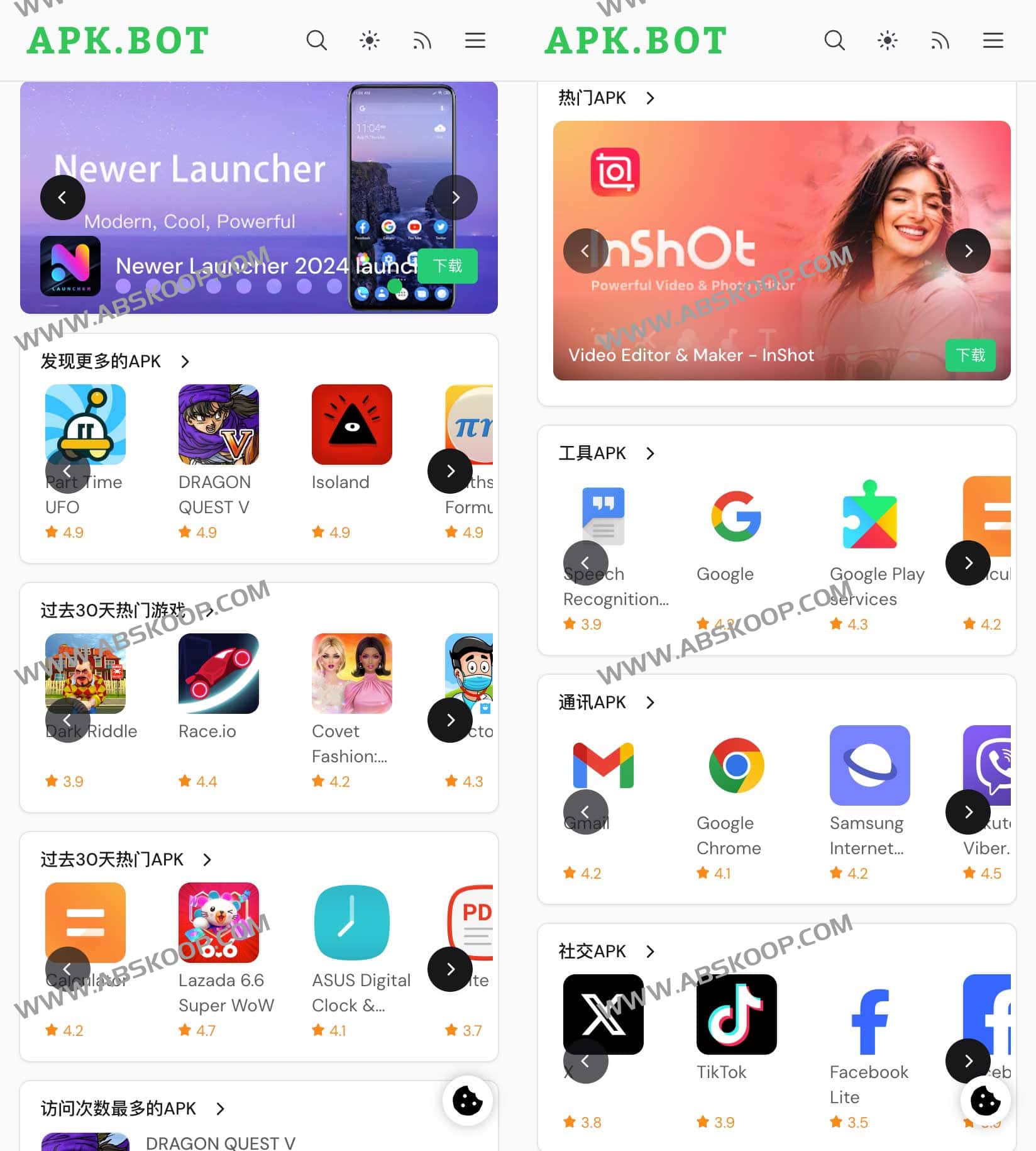 APKBOT是一个免费在线APK下载器网站,绿色无广告,适用于Android各种类型的游戏和软件应用,使用安卓移动设备的APKBOT APK在线下载器发现和更新安卓应用程序和游戏,对于国内网络不好的用户可以直接在上面下载apk文件,免注册登录使用,非常方便。