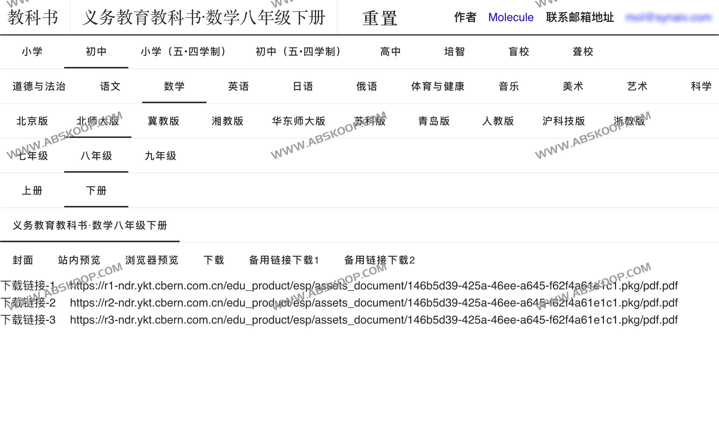 中文教科书是一个免费在线中小学电子教材下载工具,层级目录自由定制,免登陆直接下载,支持小学、初中、高中、培智、盲校、聋校等等各学科、各版本的电子教材下载,支持在线预览和PDF文档、封面预览下载等等操作,且用且珍惜。