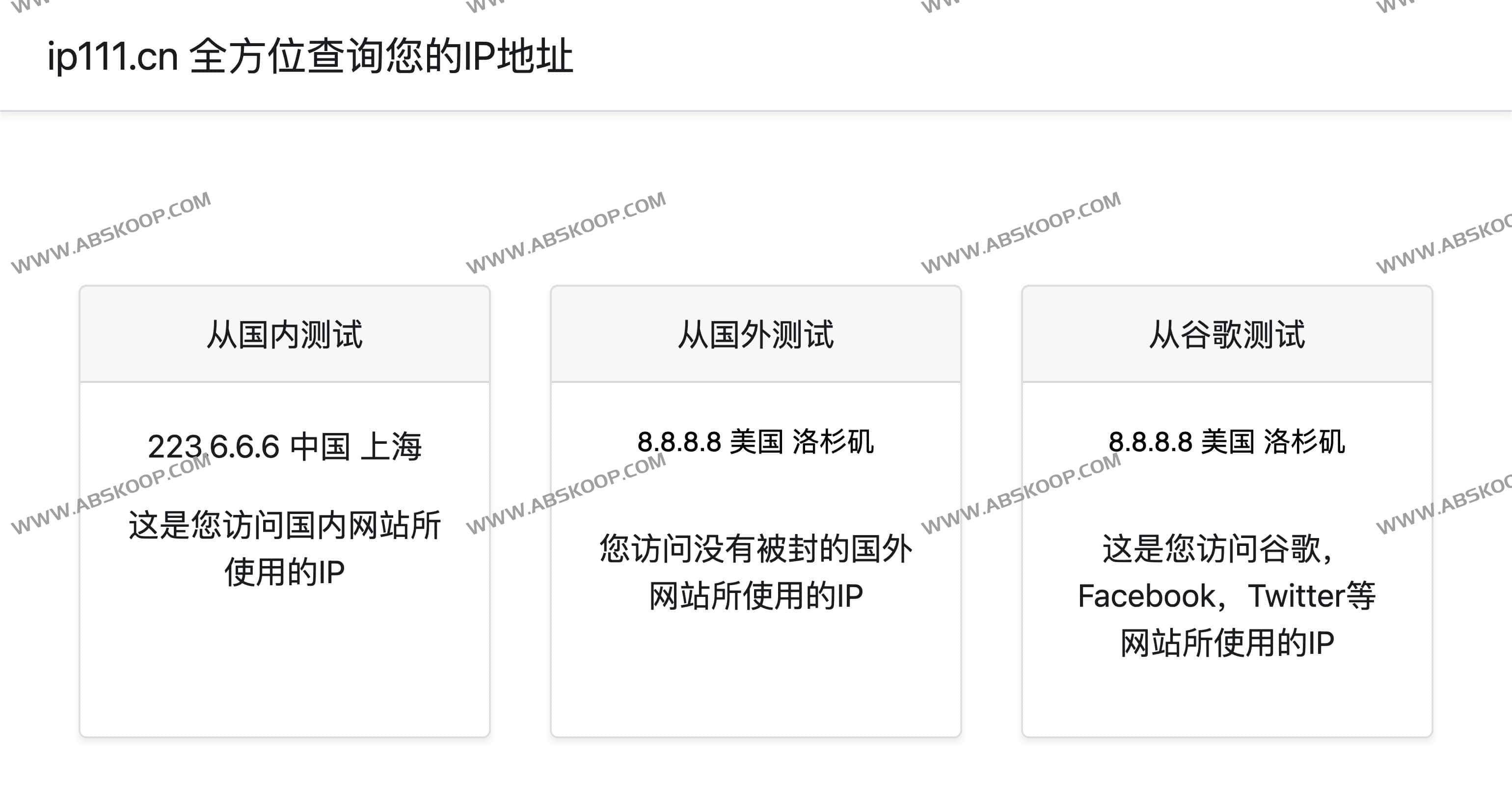 ip111.cn 是一款在线简单的全方位查询你的IP地址工具,能够显示查询自己的IP地址,从国内和国外和谷歌分别显示查询自己的IP地址,和软路由内置的某插件功能差不多,属于简化版,对于经常需要海外上网的同学测试网络情况非常不错的在线IP的地址查询工具。