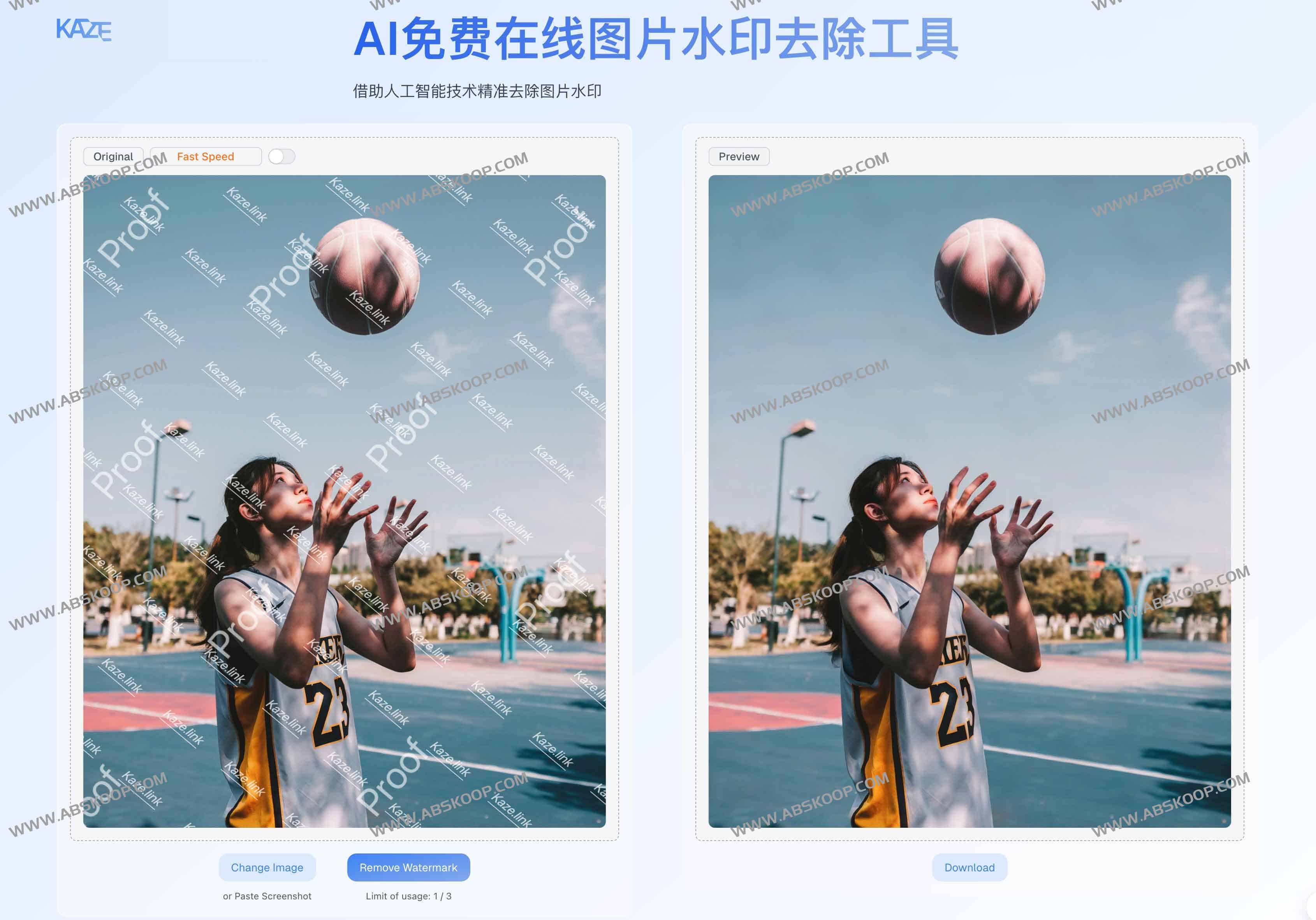 kaze.ai 是一款AI免费在线图片水印去除工具,基于人工智能的免费在线水印和logo去除工具,能够轻松从照片和图像文件中去除水印或徽标,无需任何技术专业知识即可快速实现清晰美观的效果。水印是叠加在图像上的标记或文本,通常半透明,会影响图像的美感。kaze.ai 专业支持 JPEG/JPG 和 PNG 格式,使用方法简单,只需上传图片,等待 AI 处理完成后下载无水印图像,即可轻松获取满意的结果。