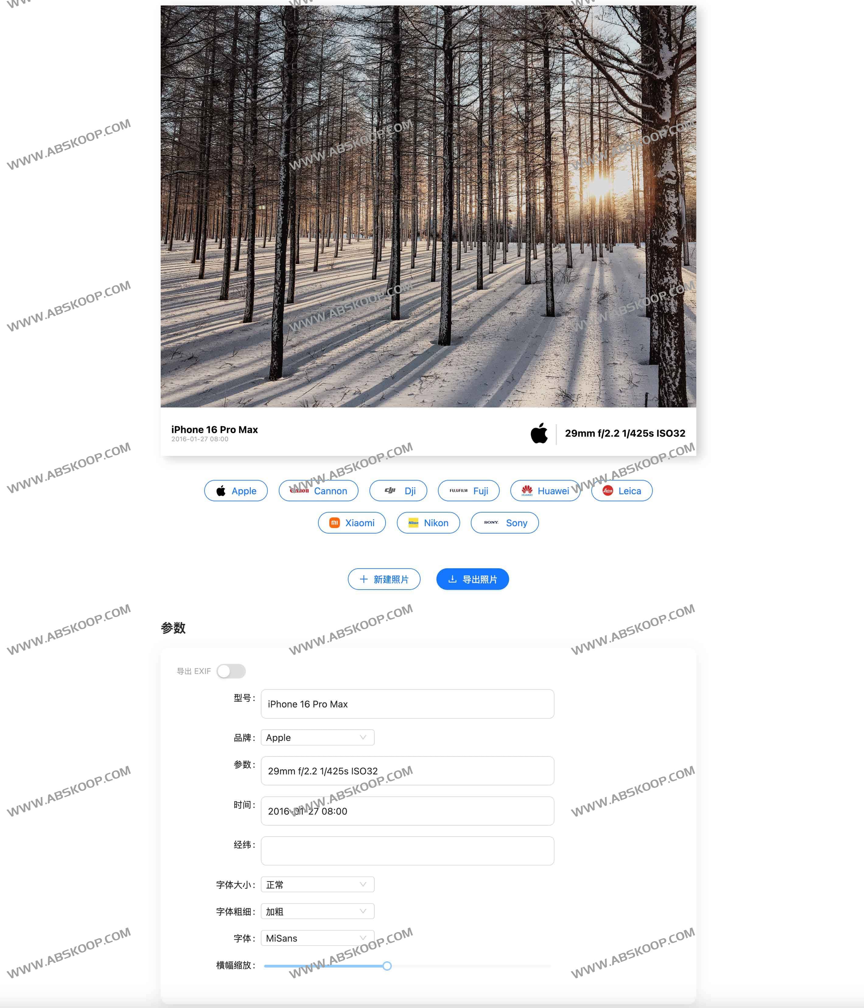 目前针对 JPEG 格式图片新增了复制原图 EXIF 信息嵌进导出的图片中,目前的实现方式比较简单粗暴,直接从原图二进制数据提取 EXIF 部分的数据,再同样以二进制格式进行拼接,不能确保稳定。