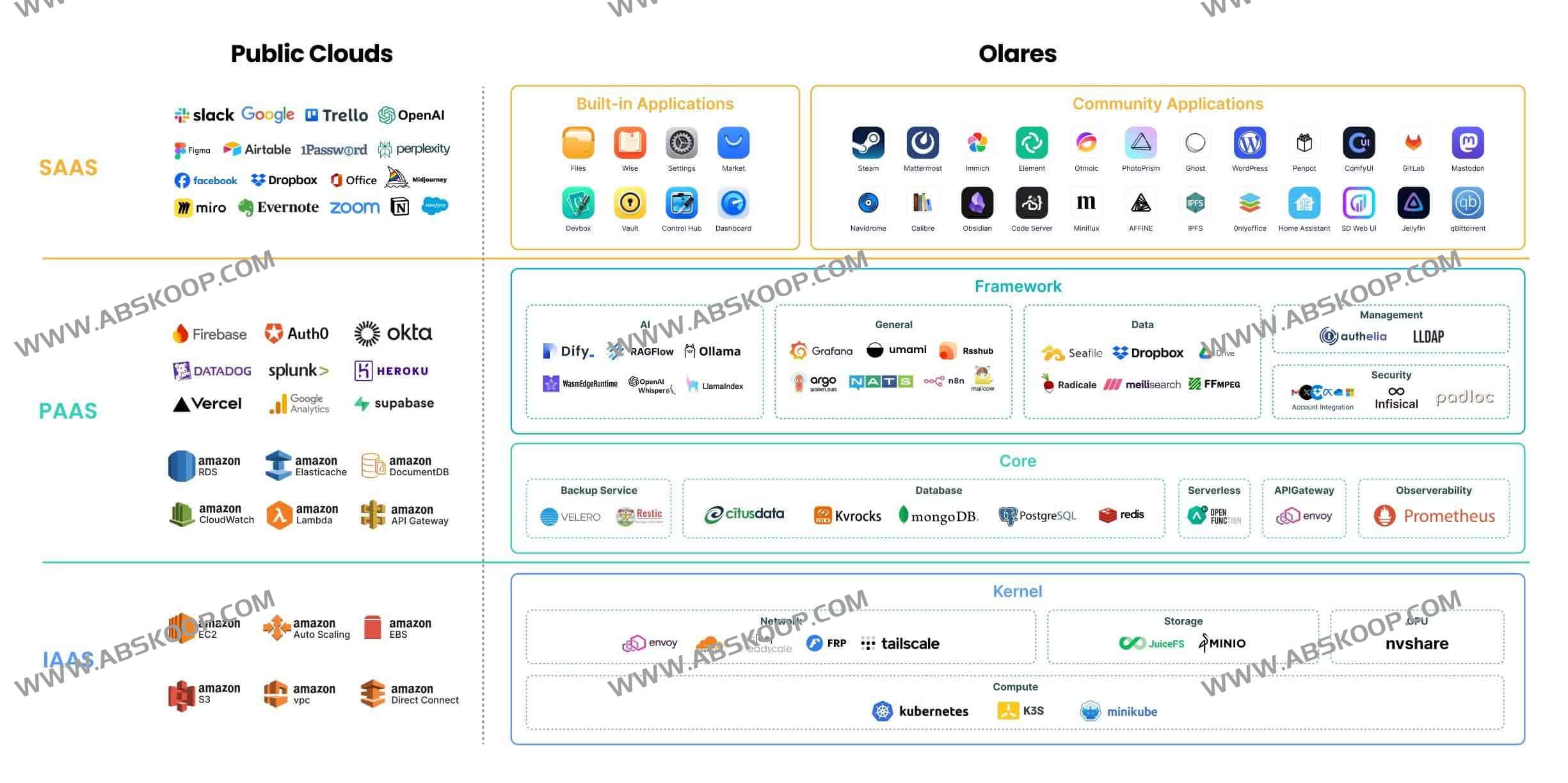 Olares 是一个让你完全掌控的主权云平台。它是公有云(如 AWS)的开源、自托管替代方案,旨在帮助你重获数据主权和隐私控制权。通过将 Kubernetes 的强大功能与简洁的界面相结合,Olares 使你能够完全掌控自己的数据和计算资源。无论你是在管理家庭实验室、部署应用程序,还是保护个人隐私,Olares 都能提供媲美公有云的灵活性和功能,同时确保隐私和安全不受损害。