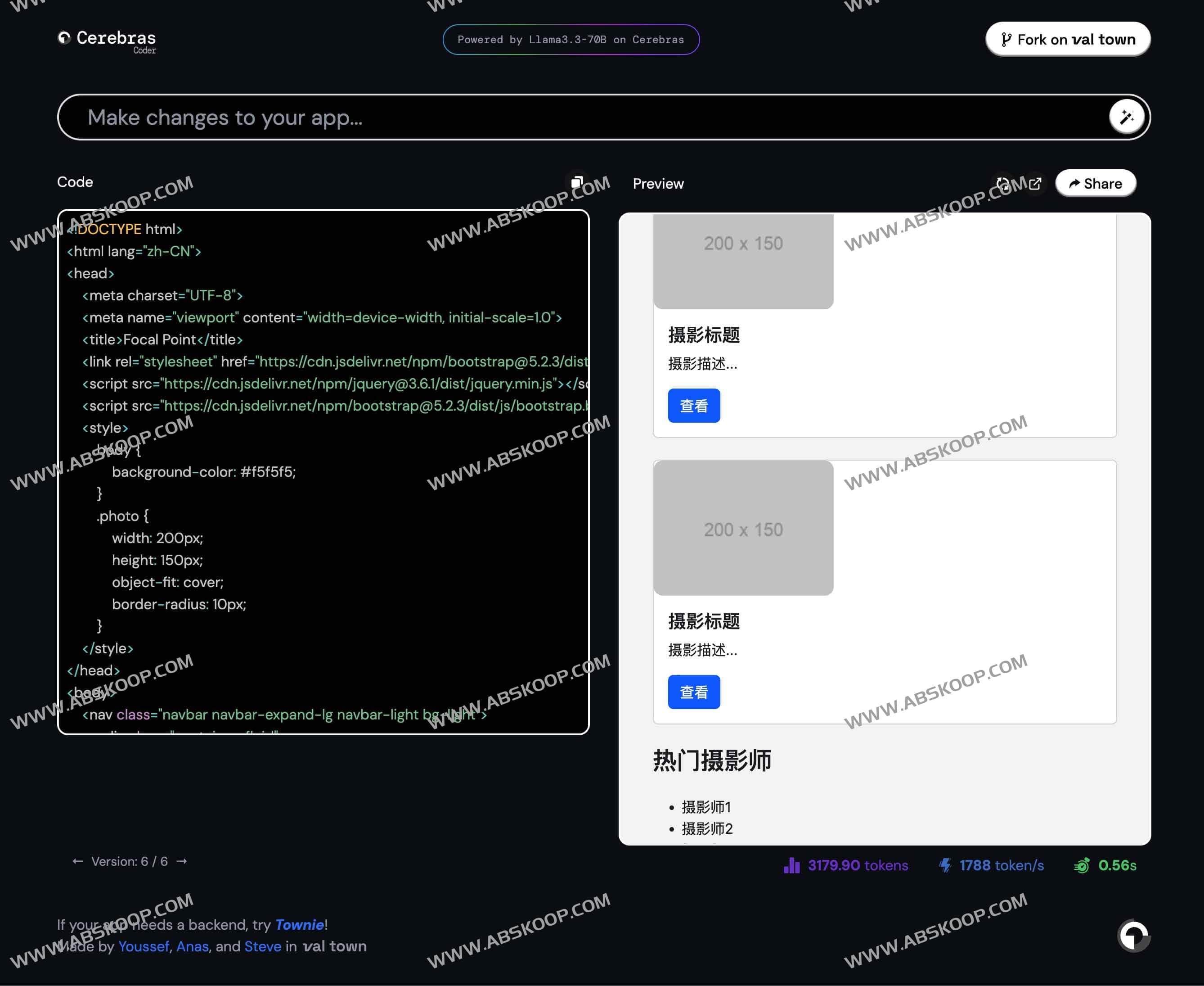 CerebrasCoder 是一款开源的 AI 网站搭建工具,只需一句话就能生成一个网站应用,它利用 Cerebras Systems 的超快晶圆芯片和 Llama3.3-70b 模型,能够在不到一秒的时间内将用户的想法转化为功能齐全的应用程序。这款工具由 Steve Krouse 开发,旨在彻底改变网站创建的方式,其核心特点是速度极快,用户可以像打字一样快速构建网站。CerebrasCoder 的代码是 100% 开源的,并托管在 Val Town 上,而且完全免费提供给用户使用,对于对网站开发感兴趣或希望简化工作流程的人来说,是一个值得尝试的新工具。