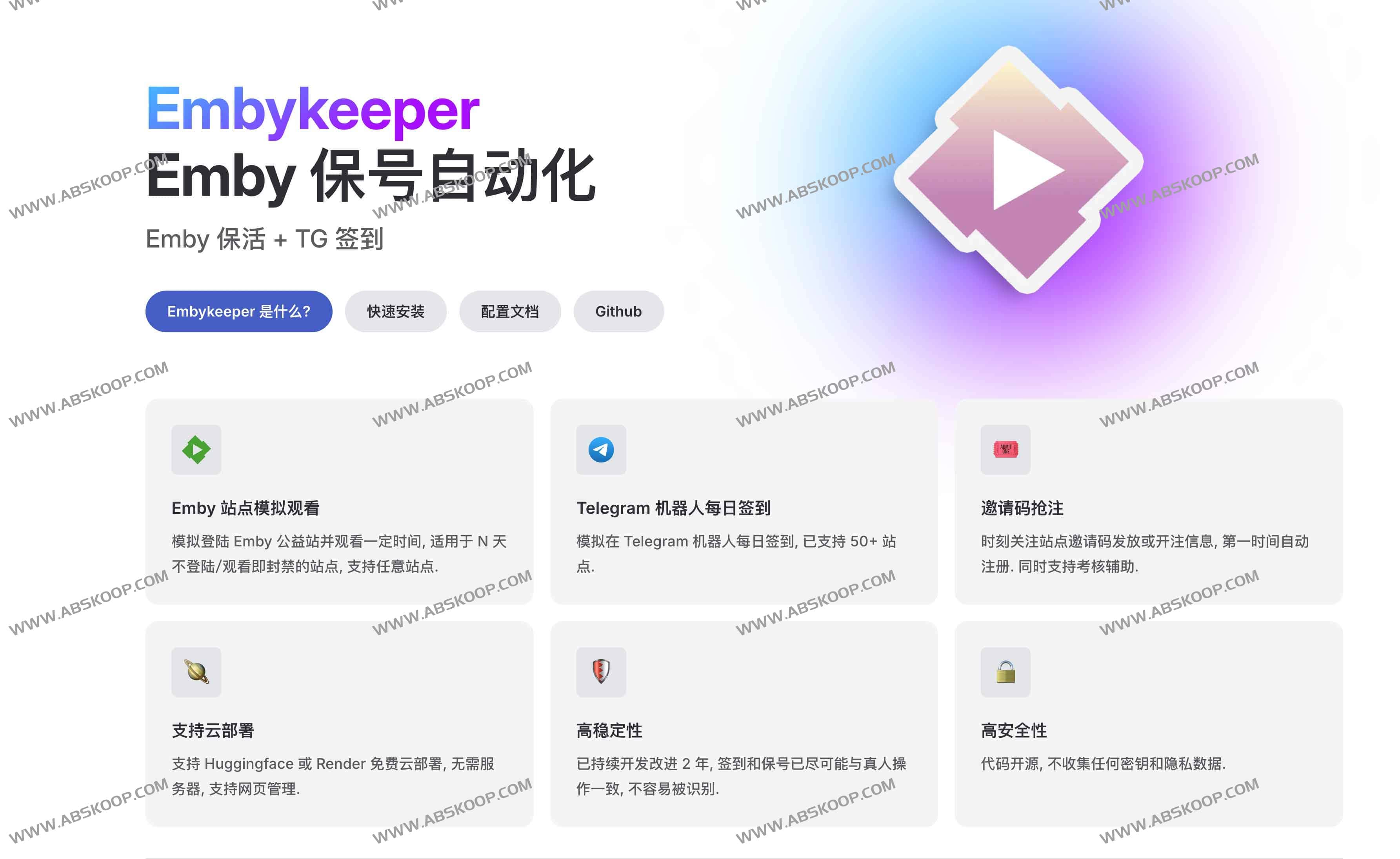 GitHub:https://github.com/emby-keeper/emby-keeper