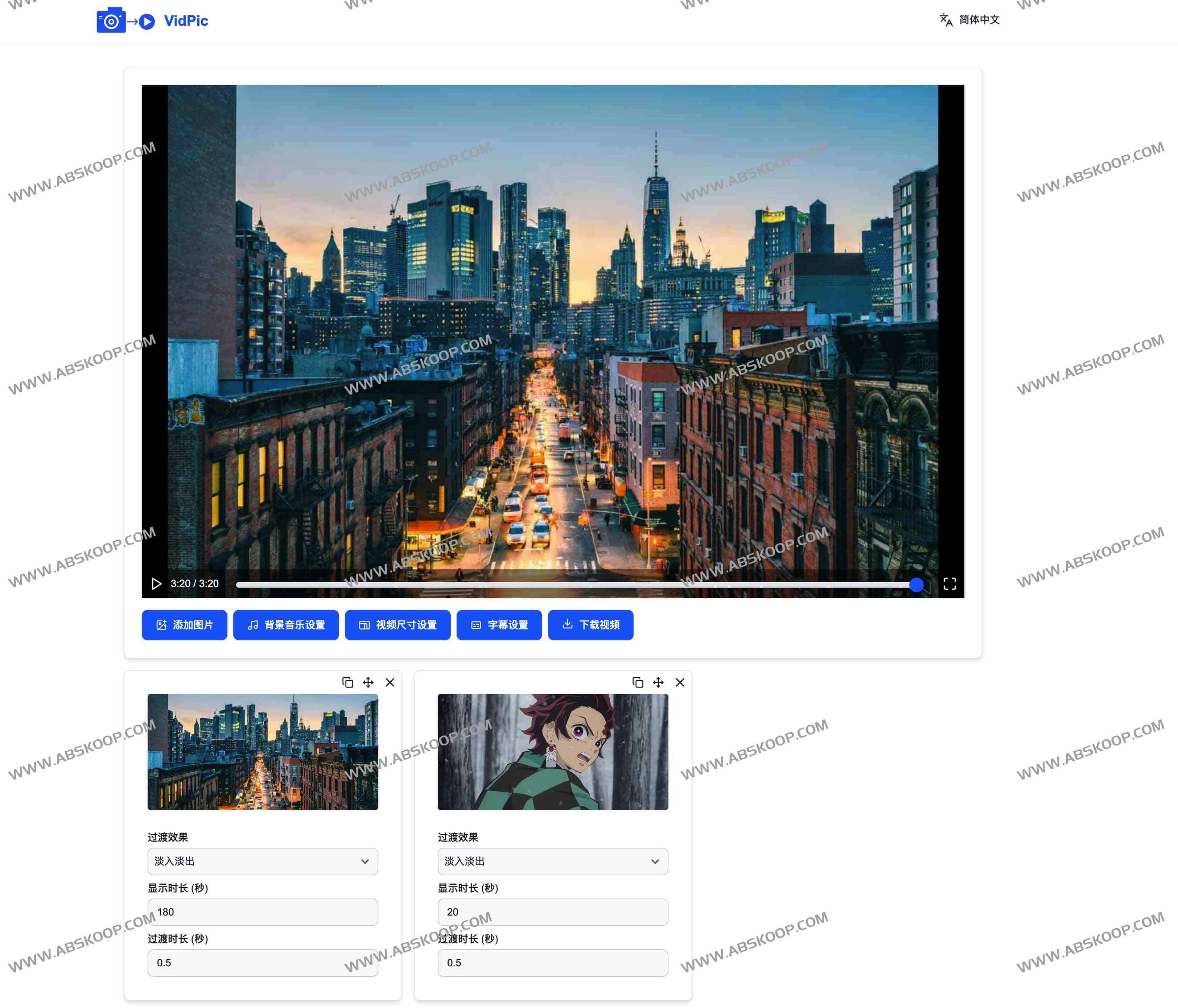 VidPic是一款免费在线图片合成视频工具,支持将图片和音乐合成视频,无需下载或登录,快速生成高质量短视频,支持个性化设置,添加过渡效果和字幕,操作简单,非常适合社交媒体分享。