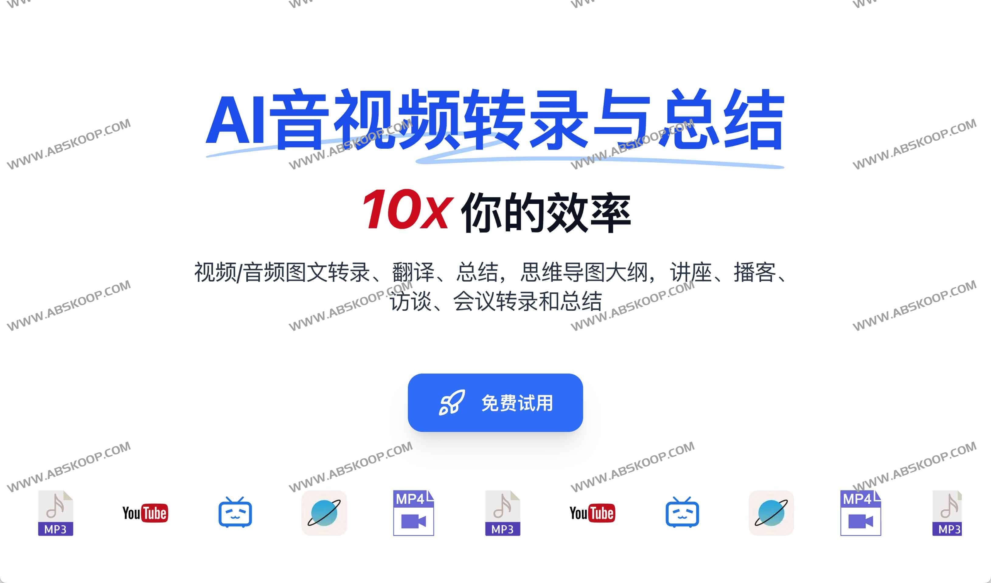 • 主流在线音视频解析:支持 YouTube、BiliBili、小宇宙等主流平台内容解析,无需下载;同时也支持本地音视频文件上传。我们正在持续扩展更多平台支持,敬请期待!