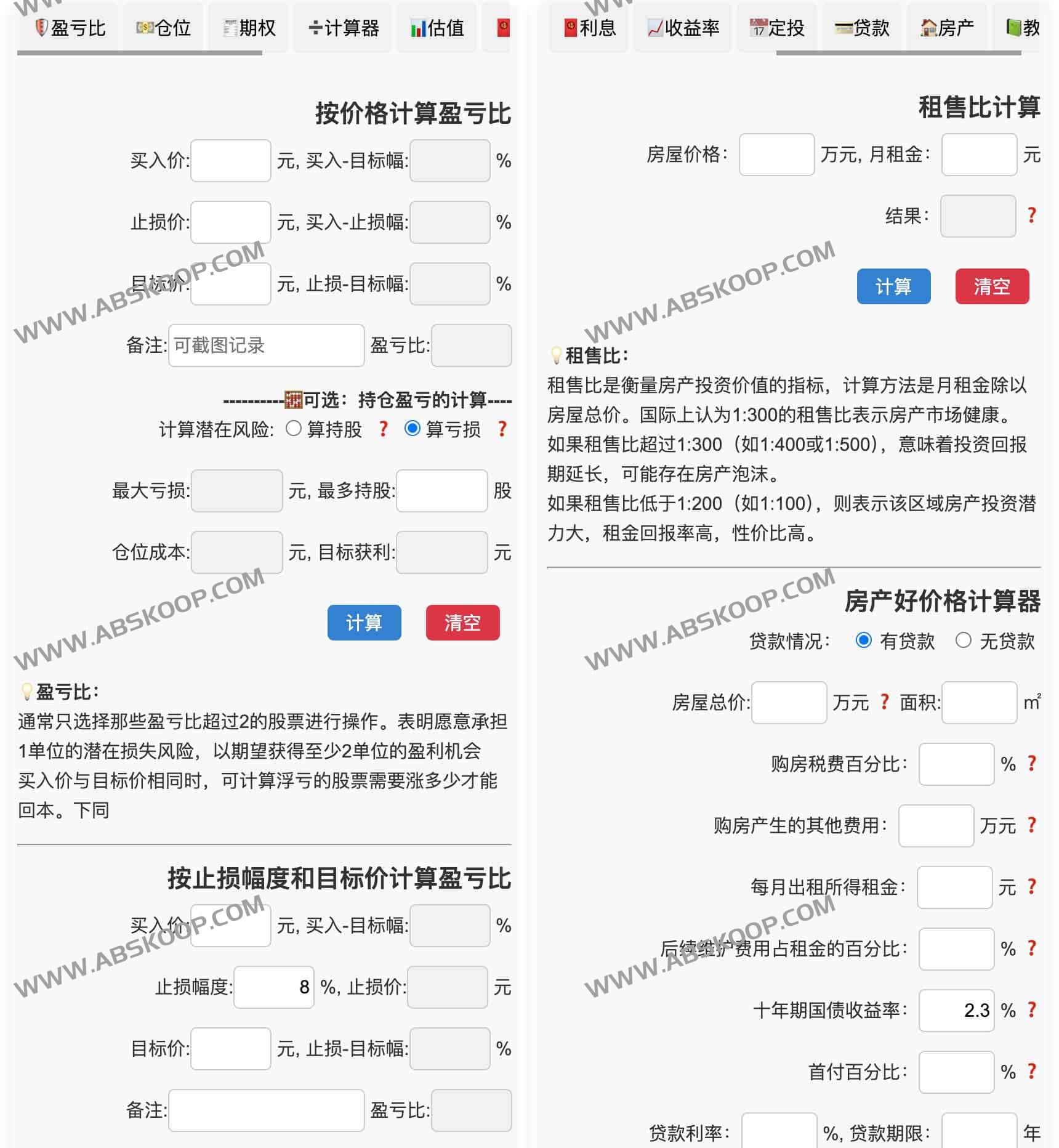 股迹追踪投资收益计算器是一款功能全面且操作简便的理财工具,可计算收益率、利息、定投回报、财务自由目标、按揭贷款、房产估值、盈亏比、股票仓位及期权价格等投资细节。结合高效的交易记录管理和智能分析,帮助用户轻松复盘交易,优化决策,让投资收益一目了然。