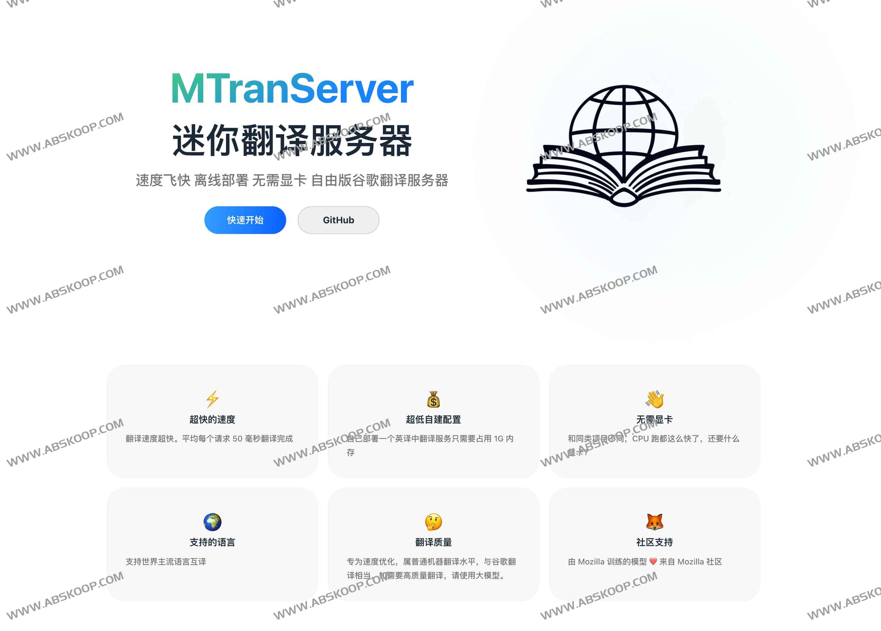 - 超低自建配置:自己部署一个英译中翻译服务只需要占用 1G 内存