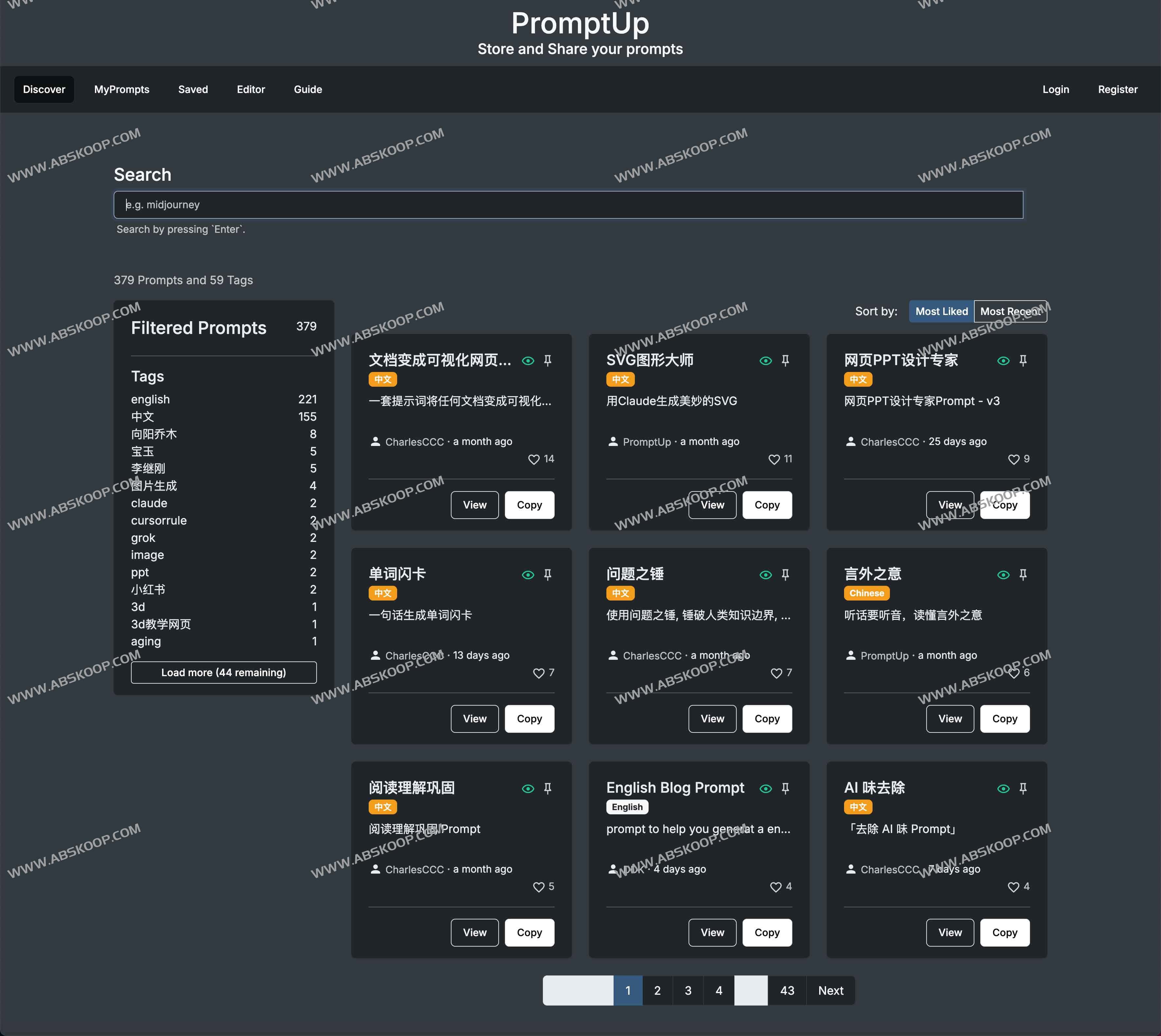 PromptUp是一款简洁高效的网页应用,致力于帮助用户创建、存储和分享AI提示。该平台支持Markdown格式与语法高亮,提升提示编写和管理的便利性。用户可以便捷地保存自己的提示,并通过平台轻松共享,实现优质内容的组织与传播。