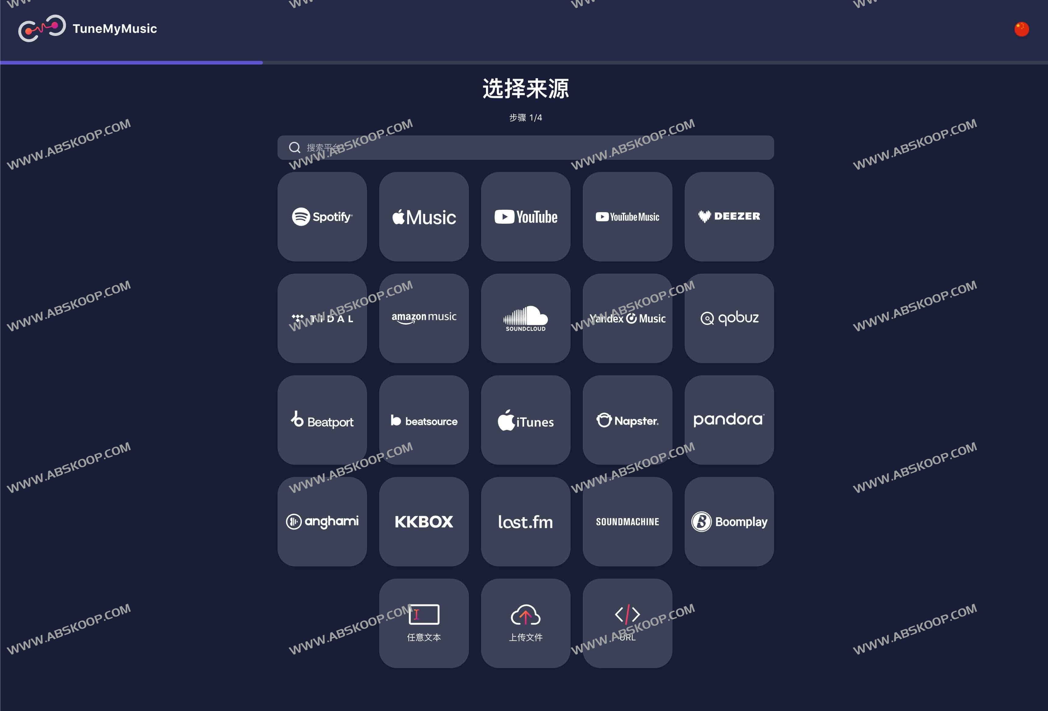 4、选择歌单来源“任意文本”,将刚刚复制的歌单粘贴进去,选择 Apple/Youtube/Spotify Music 作为目的地,确认迁移
