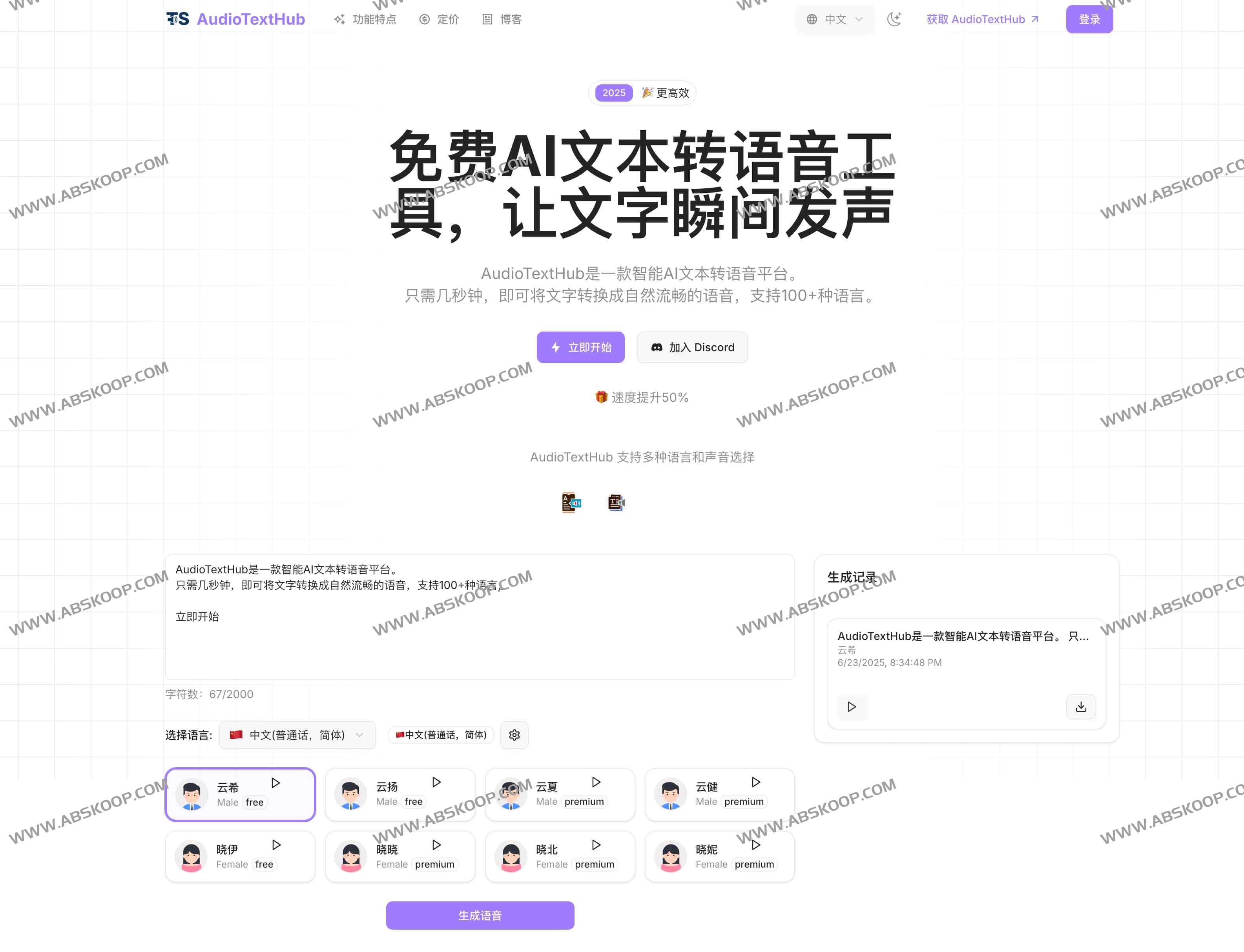 AudioTextHub集智能AI语音技术、多语言支持和快捷集成为一体,为创作者、企业和开发者提供一站式文本转语音解决方案,让内容更具吸引力,加强听觉传播效果。