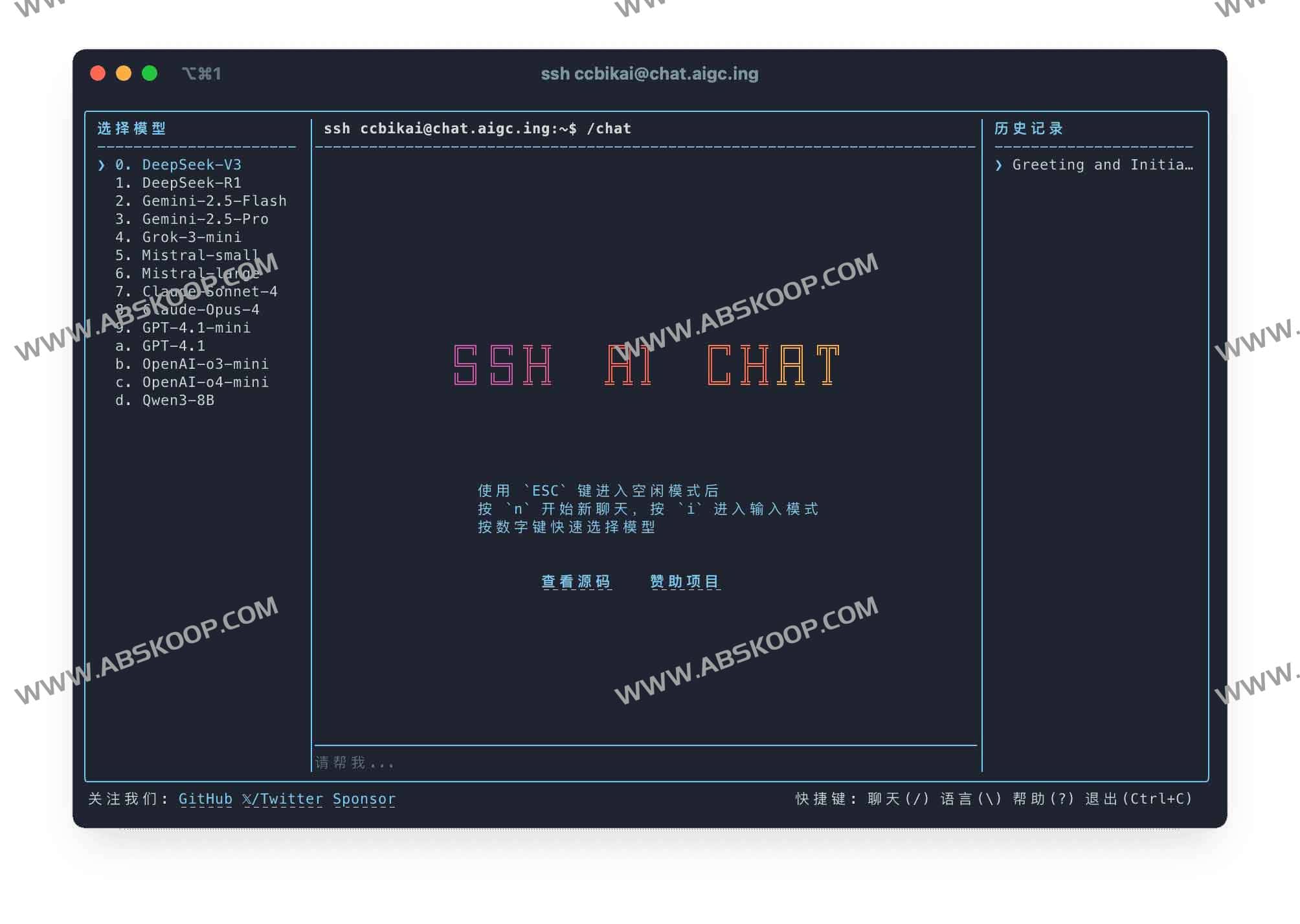 GitHub地址:https://github.com/ccbikai/ssh-ai-chat