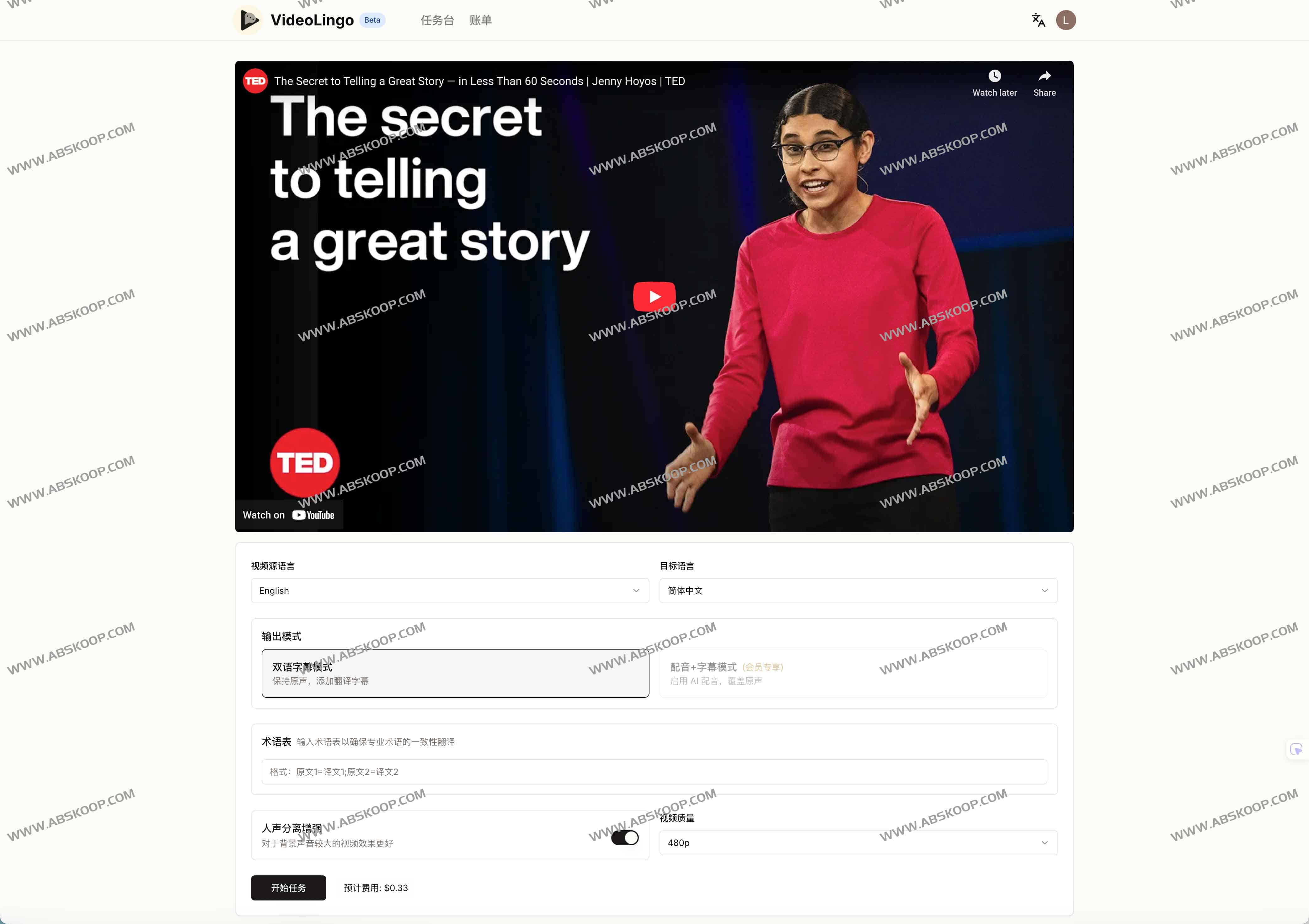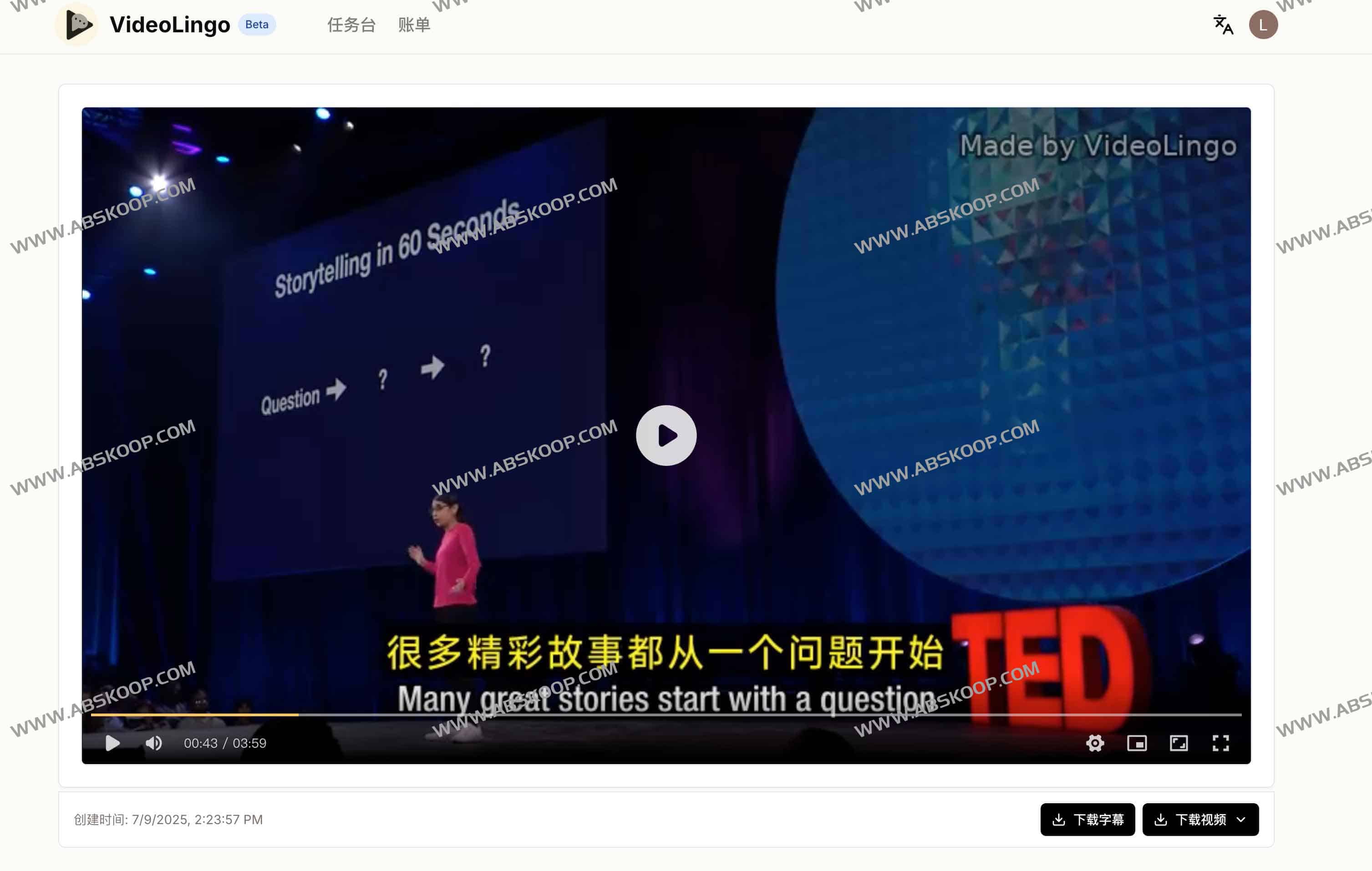 官网提供 15 分钟免费额度,可直接上传或粘贴链接体验:https://videolingo.io/