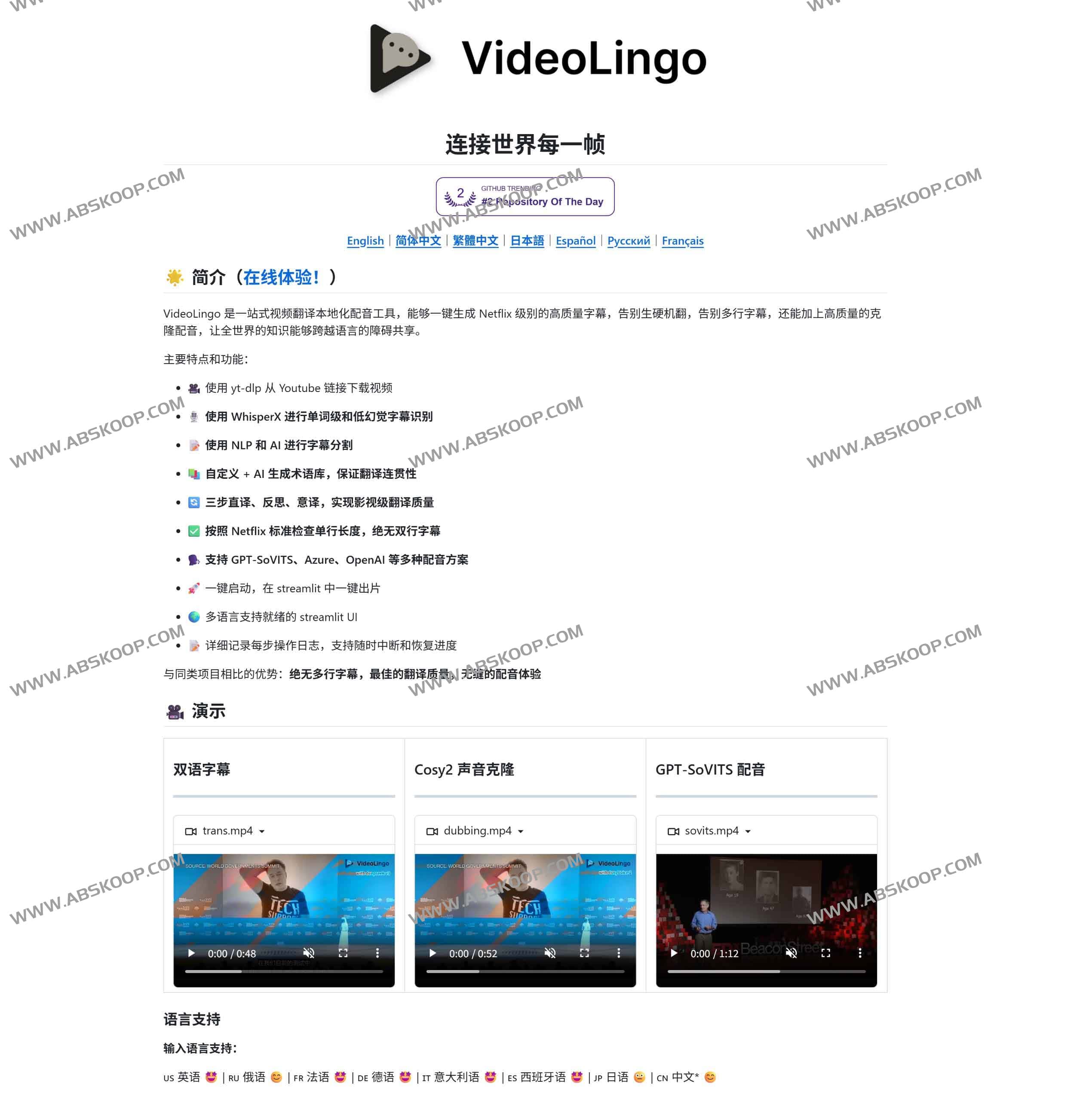 开源版在 GitHub 提供 Streamlit 一键部署脚本,方便私有化部署:https://github.com/Huanshere/VideoLingo