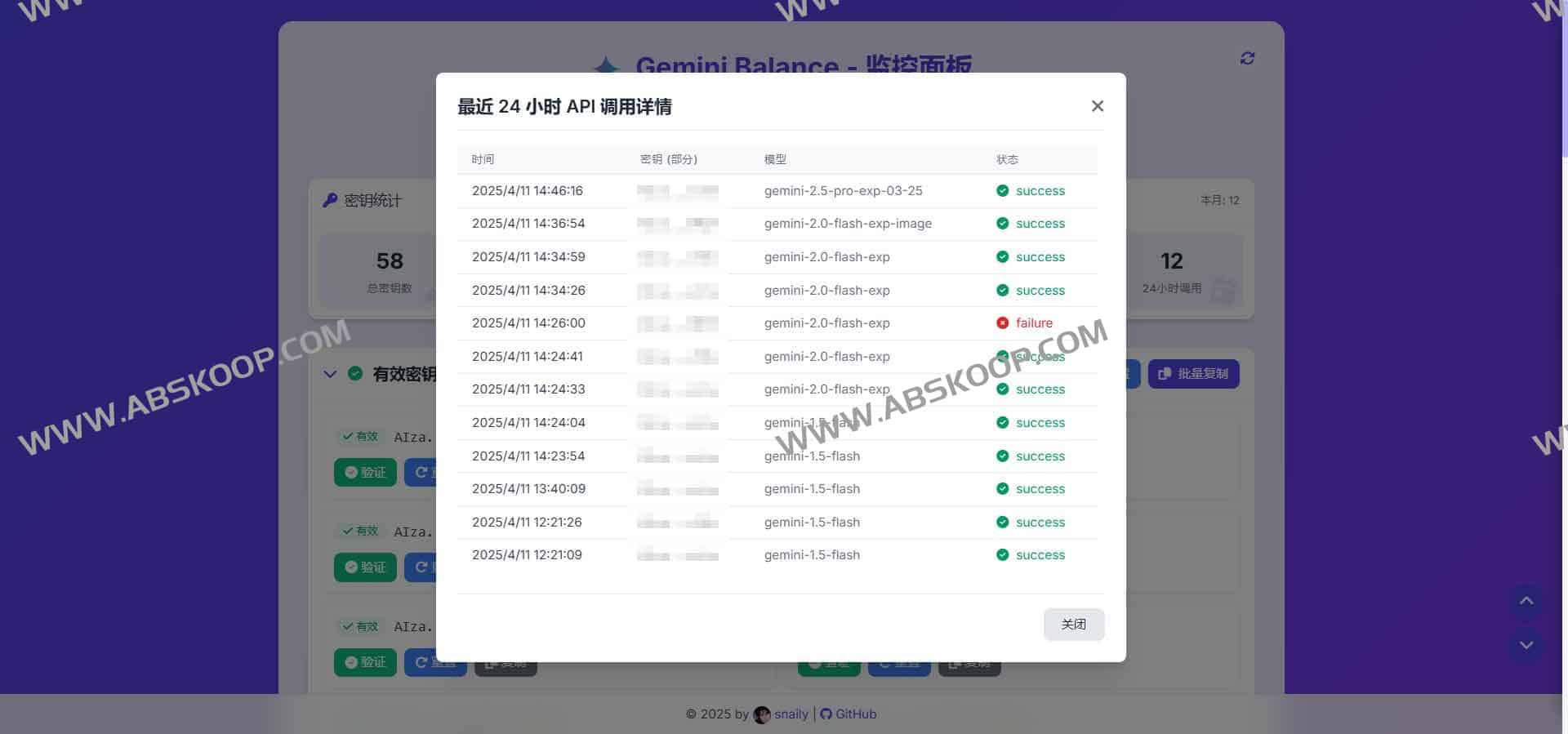 /keys_status页面,实时展示各 Key 的使用情况与健康指标 -