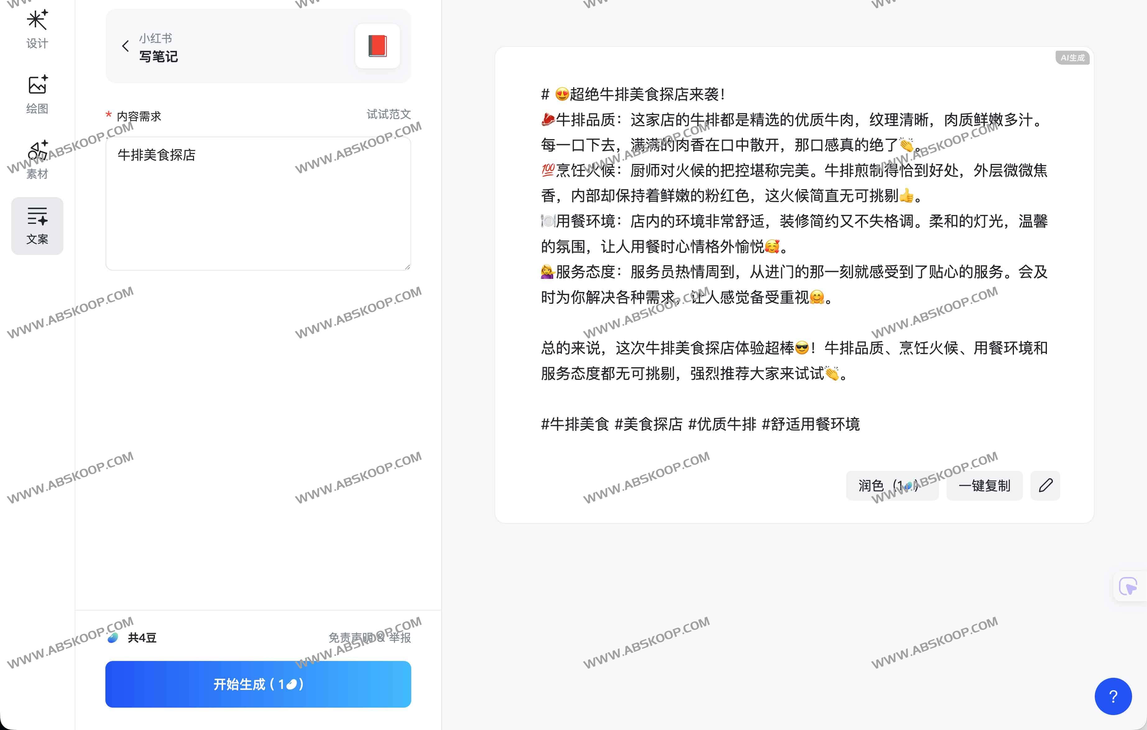 1. 打开稿定AI文案生成工具并选择对应场景(如小红书笔记)。