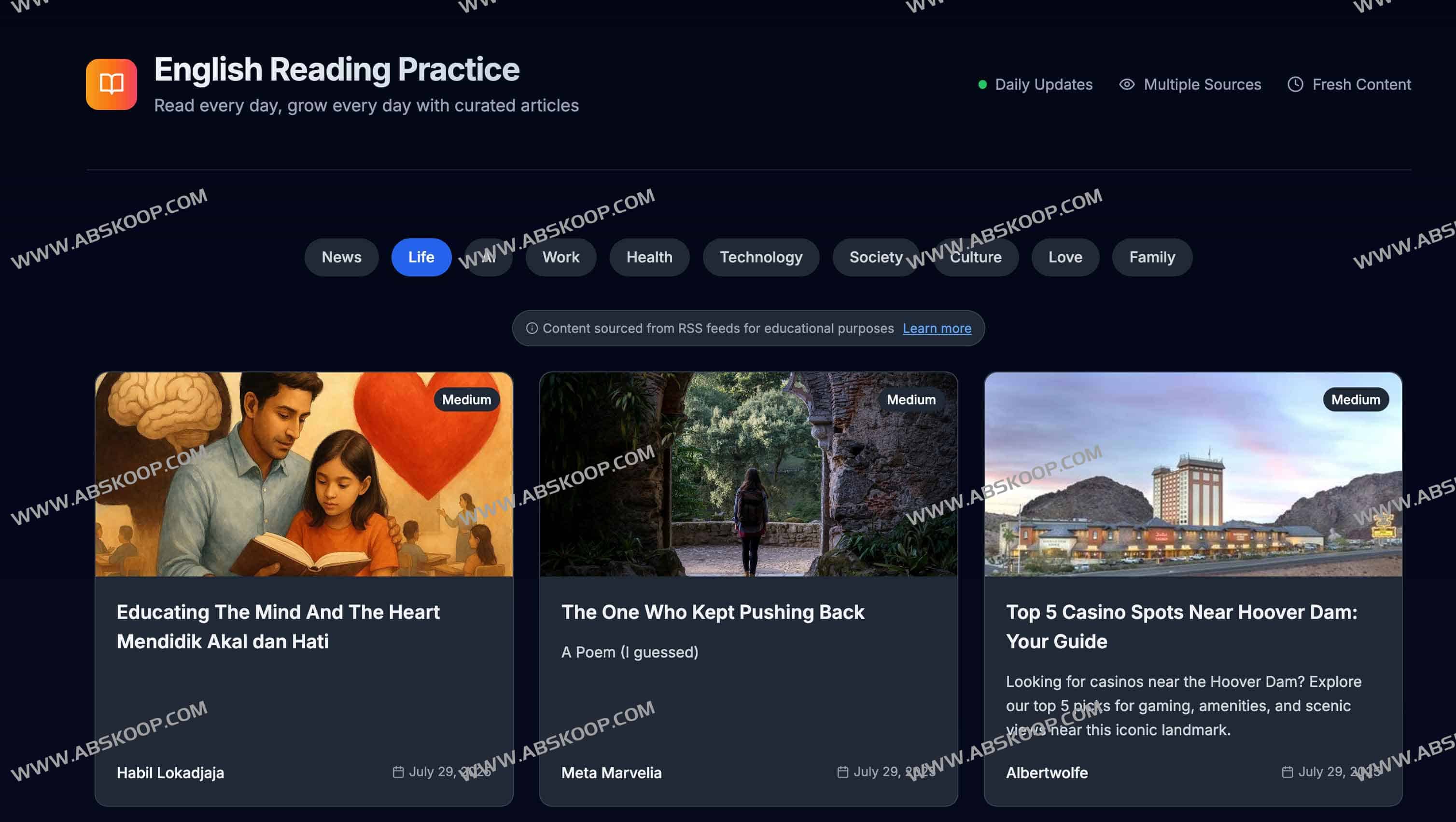通过 AI 技术与每日新内容的结合,English Daily 让英语学习者能在真实语境中不断试错、修正、再输出,逐步构建流利而自然的语言能力。