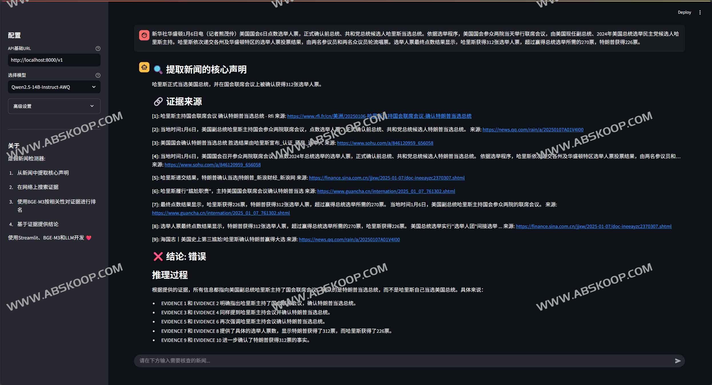 - 输入待核查的新闻文本