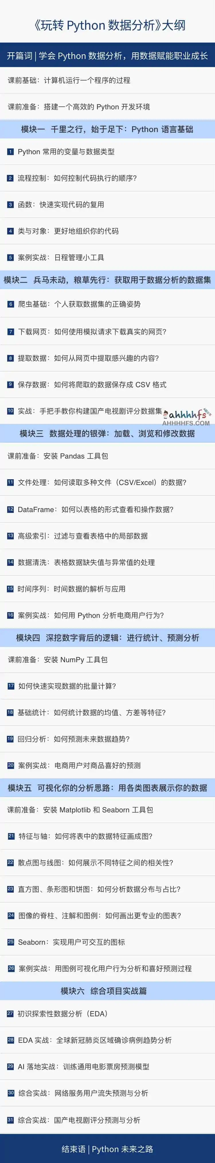 所以,专栏依据 Python 语言基础、数据集获取、数据加载及处理、数据预测、数据的可视化呈现,这 5 个功能关卡,带你掌握 Python 做数据分析关键流程,在此基础上,融入了 9 大实战项目,以练带学,帮你做到真正会应用。