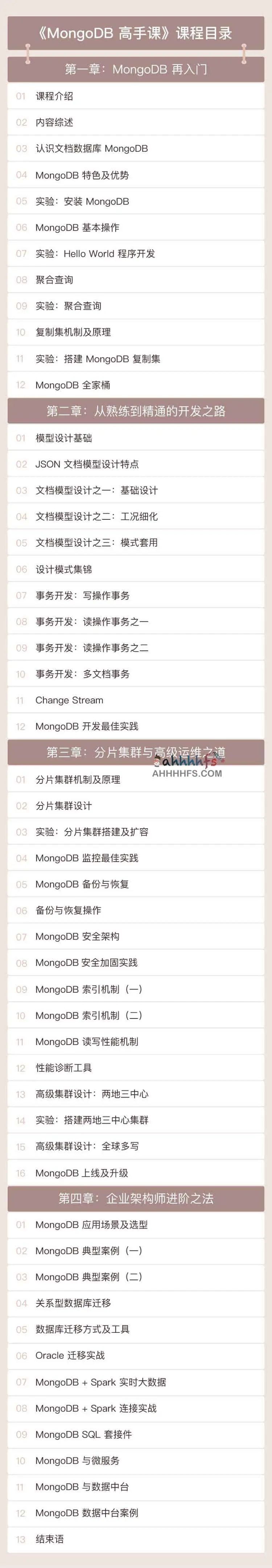 在本课程中,唐建法老师基于过往给海内外头部客户主导设计大型 MongoDB 架构的经验,采用最新的 MongoDB 4.2.1 版本进行讲解,帮你掌握更高阶的 MongDB 开发及运维管理技巧,以及两地三中心、数据中台等典型架构的设计方法和原则,带你从初级 MongoDB 使用者成长为专家级 MongoDB 用户。