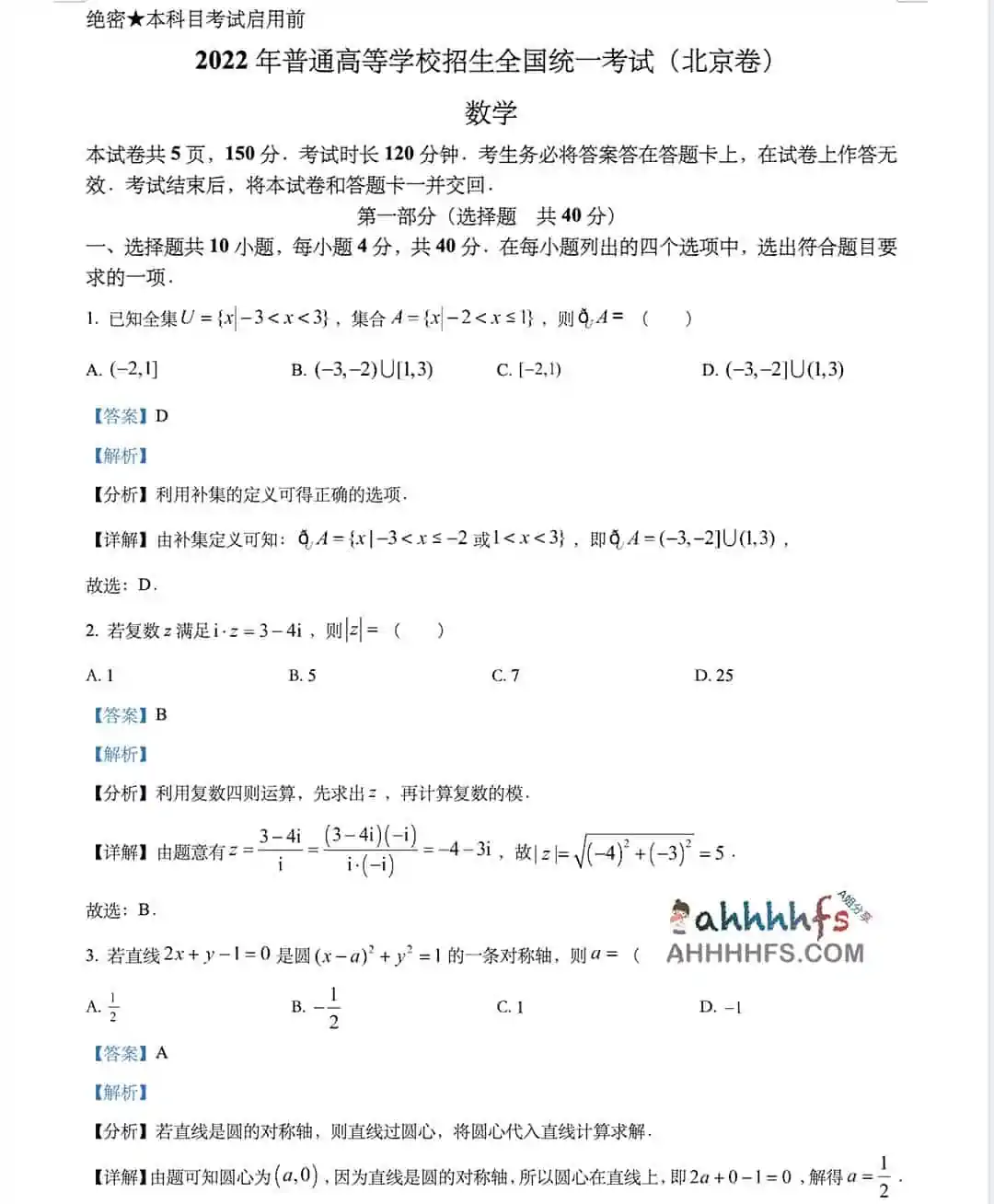 2022年高考各省试卷,附答案解析,阿里云盘下载。