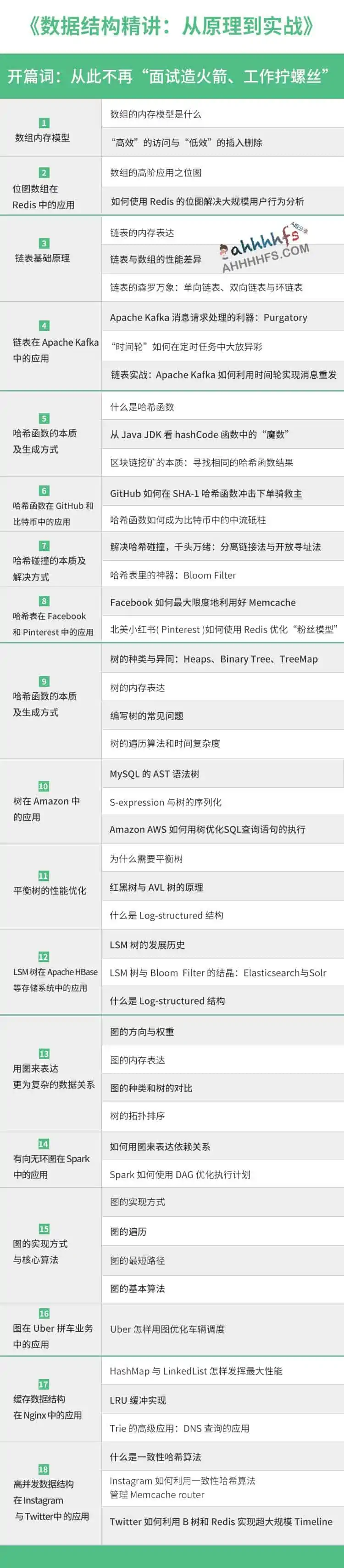 数据结构精讲:从原理到实战,硅谷资深工程师带你玩转数据结构。