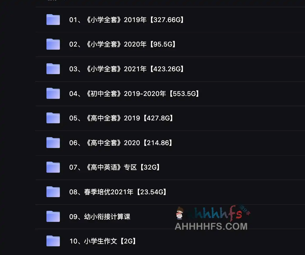 中小学生顶级机构课程大全,包含幼小、小学、初中、高中全套各科课程资料,阿里云盘下载,资源来源于网络,失效不补哈。