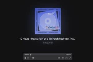 一首白噪音,10 小时铁皮门廊屋顶上的大雨和雷声/10 Hours – Heavy Rain on a Tin Porch Roof with Thunder – lluvia y el trueno – Ambient,接触少的应该不太懂这方面,不过我也有时候会听,我是使用Spotify自带的,平常睡不着的话可以试试这类型的白噪音,我觉得这种白噪音应该90后或者以前的一辈可能经历过,现在的00后根本没啥机会听过房顶的雨声,出厂自带高层,除非是独栋别墅。