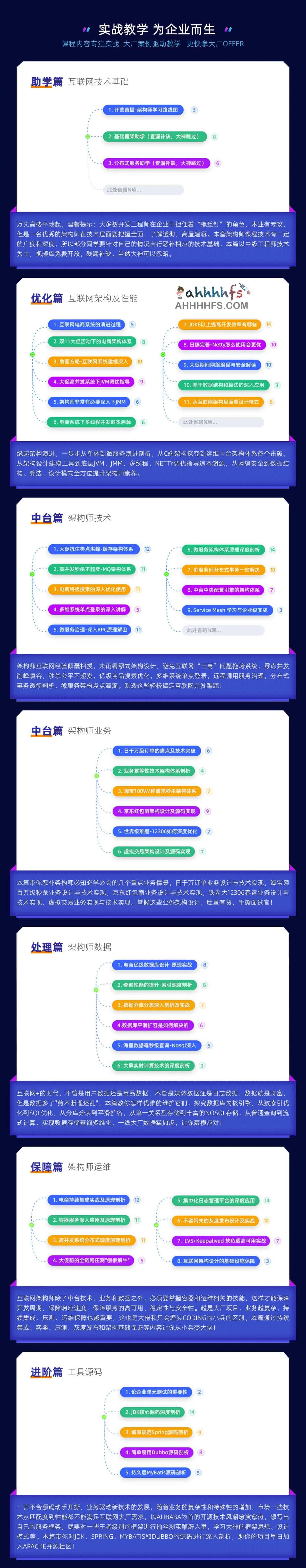 • 励志成为架构师:夯实技术底层,堂握大型互联网项目设计方案,避免踩雷。