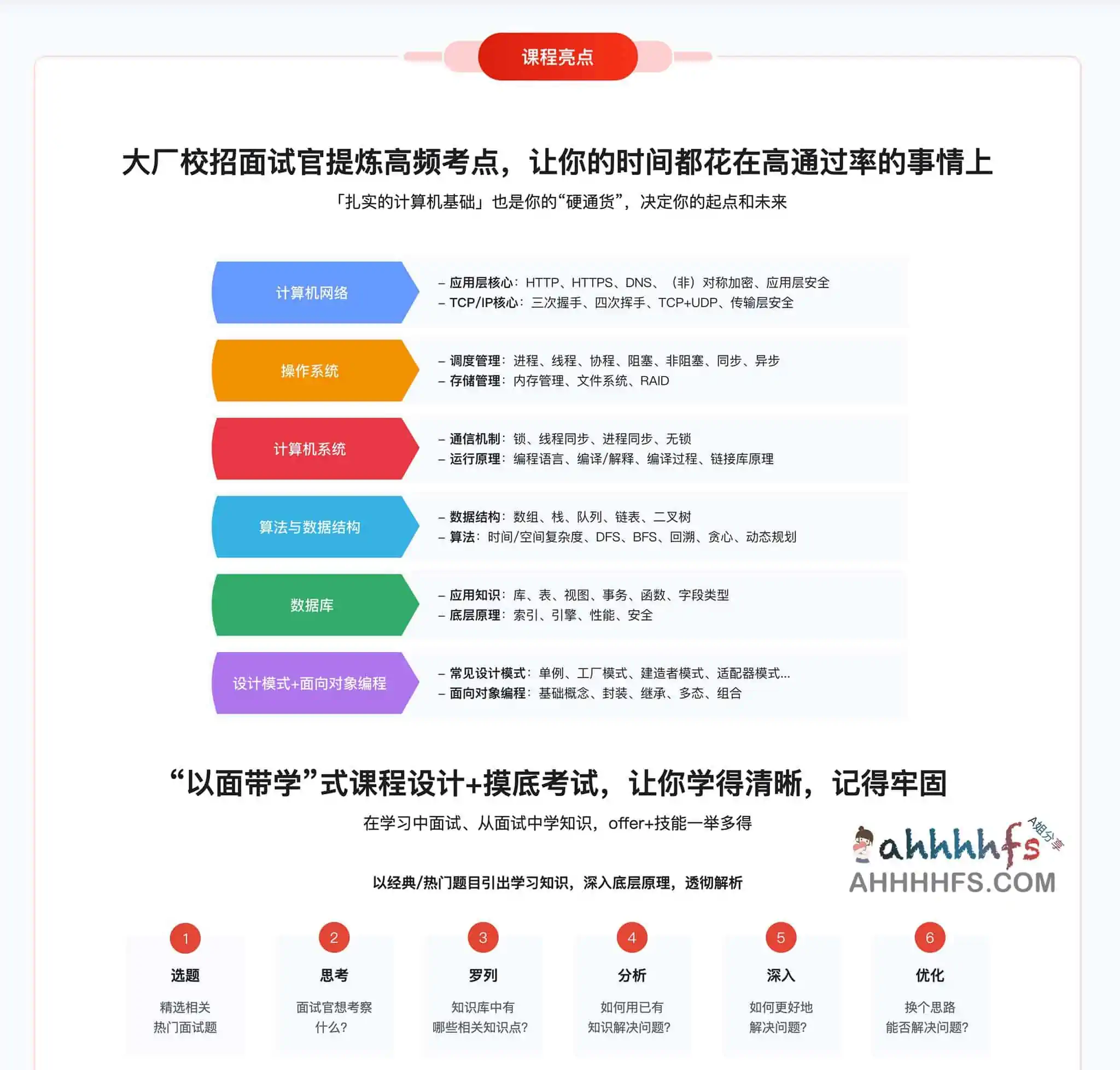 按照计算机网络、操作系统、计算机系统、数据库、算法与数据结构、程序设计的顺序,高效整合大学4年所学重点知识,夯实底层认知。