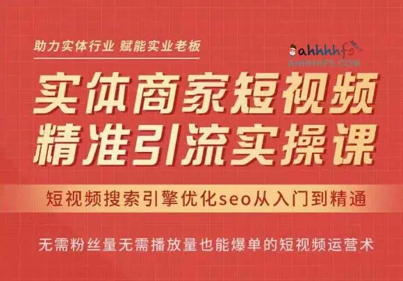 短视频搜索引擎优化SEO从入门到精通,实体商家短视频,精准引流实操课,阿里云盘下载。