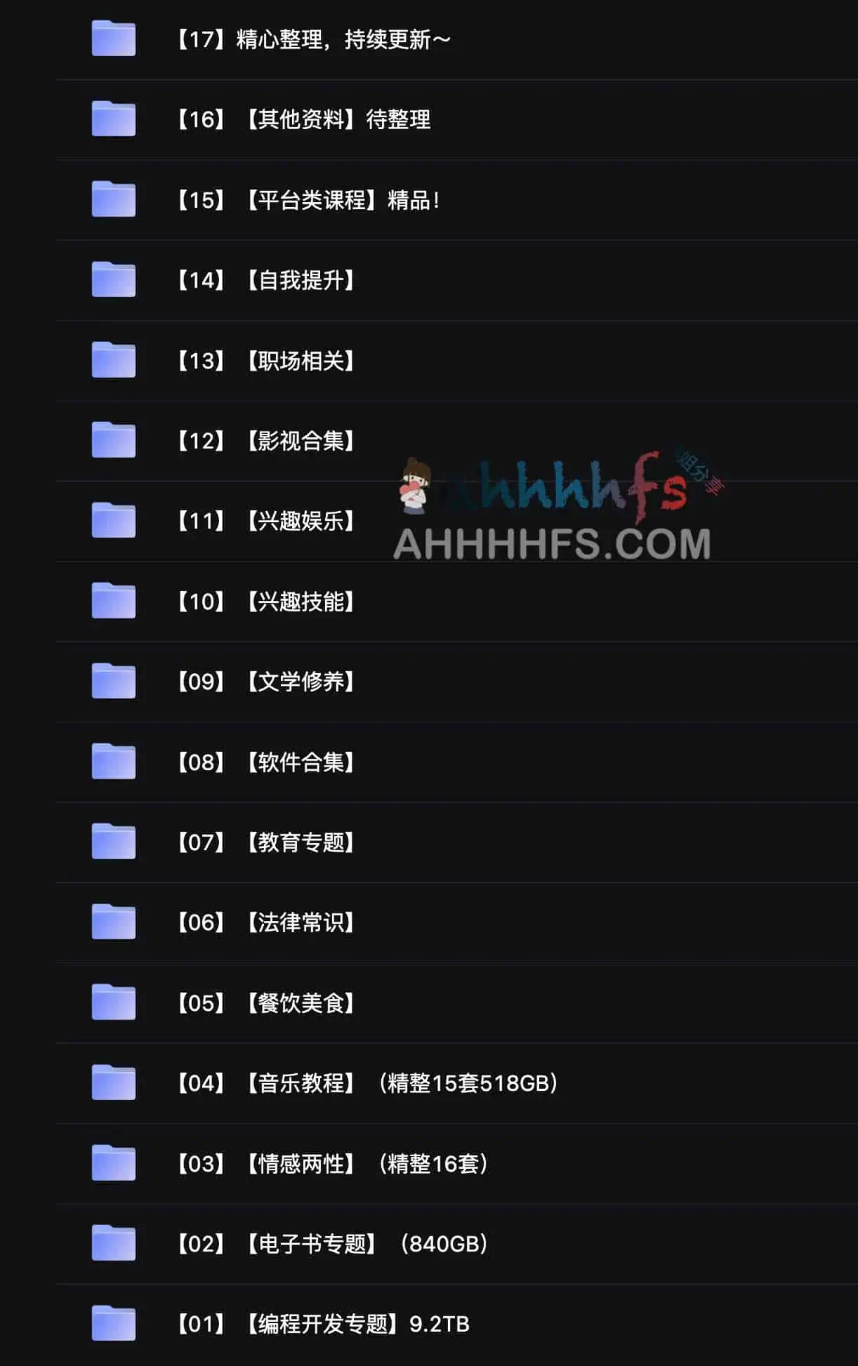 2022.11.1最新整理万人迷吧全盘资料合集,包含编程合集、书籍期刊、教育专题、影视合集、兴趣娱乐、平台资料课程、软件合集、精品资料合集等等,共计160TB,持续整理更新中,建议收藏此链接!