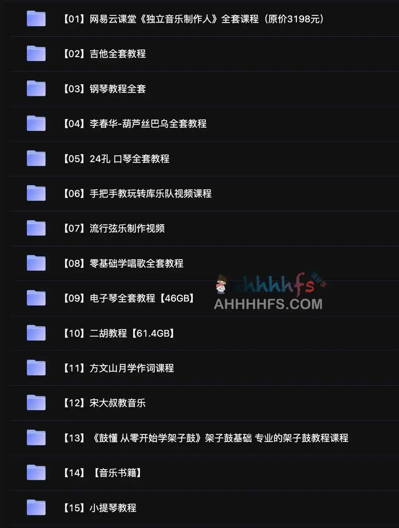 精心整理15套音乐教程 518GB,阿里云盘下载。