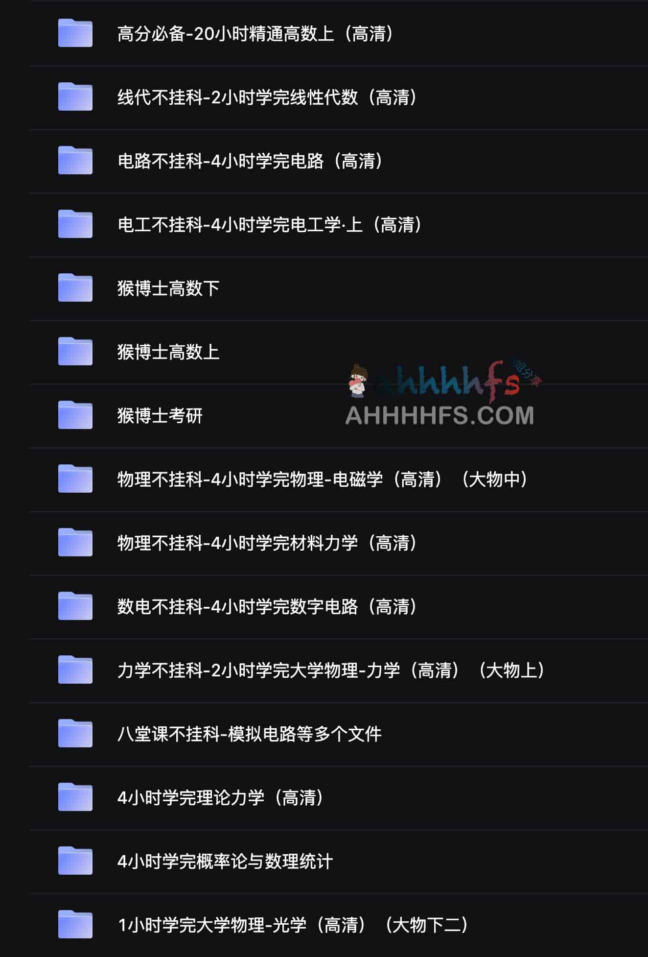 一些免费猴博士资源合集,包含物理不挂科、高数、考研、线性代数等等,存放在阿里云盘,想要学习的可以按需自行转存下载。