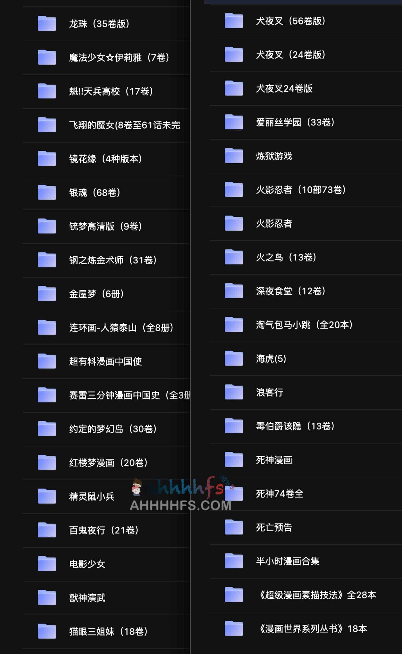 一些漫画大全,总容量75.9GB左右,包括一些犬夜叉、魔法少女、火影忍者、龙珠、半小时漫画集等等,对漫画感兴趣的同学可以按需保存。