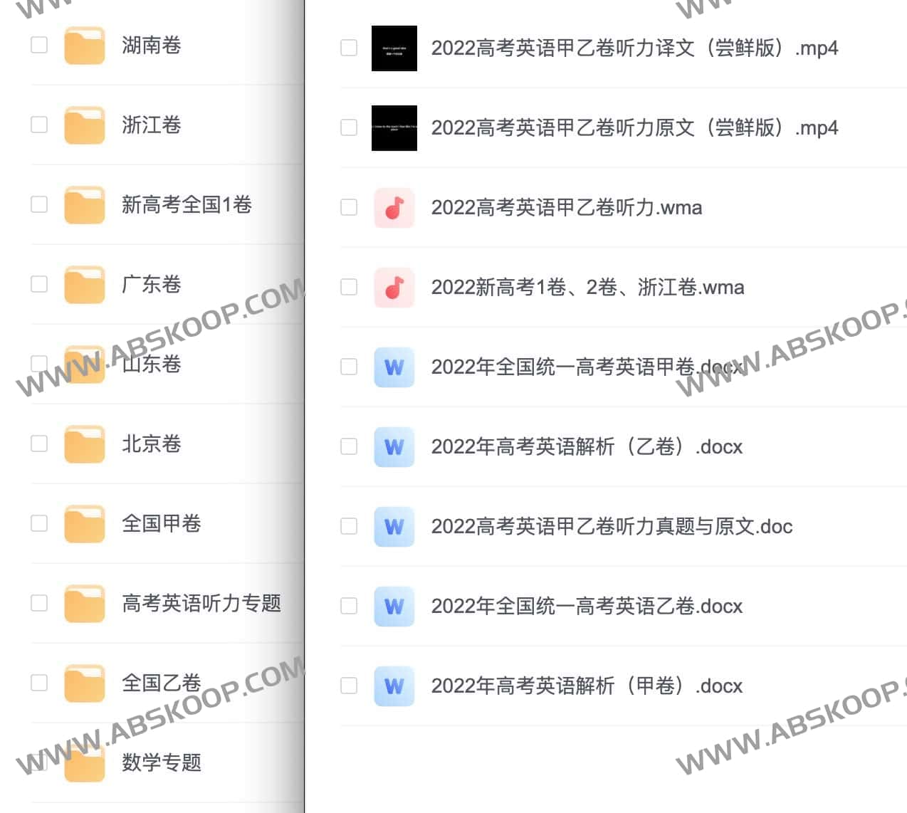 2022年全国各地最新高考真题试卷含答案(含听力),阿里云盘和夸克网盘资源下载。