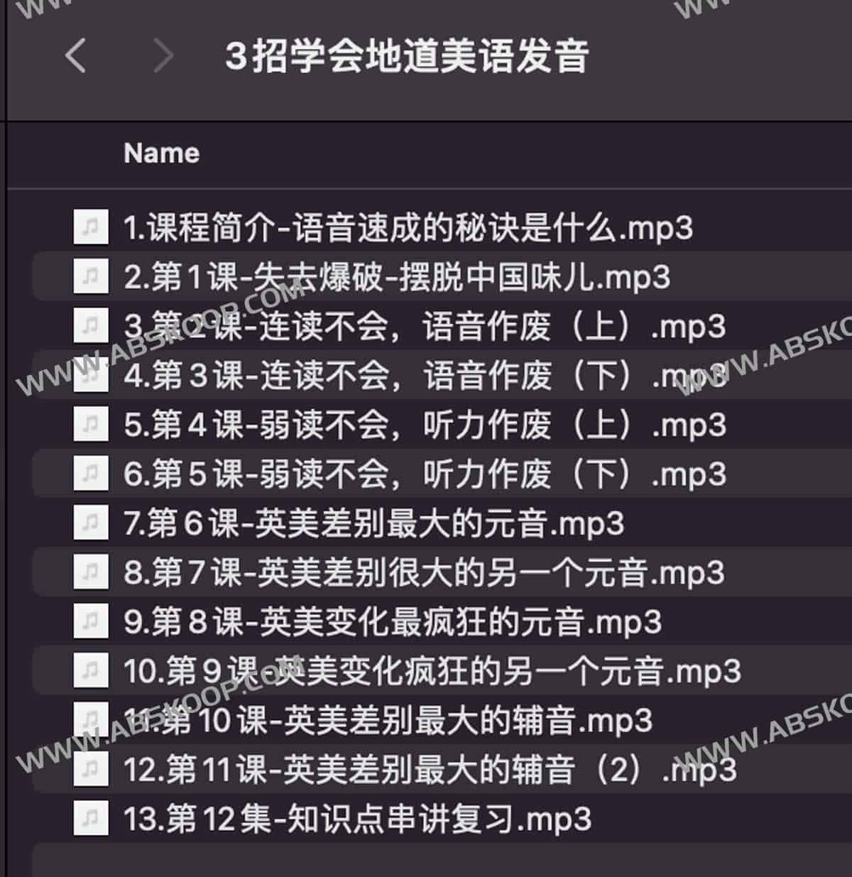 课程信息 3招学会地道美语发音,新东方教书十年干货精华浓缩成的12次课:涵盖3大句子技巧与6大美式英式音标。全程无需动笔,每条音频均配以内容文本,夸克网盘资源下载。 课程大纲 课程下载 下载地址:夸克网盘 更多英语学习资源 更多夸克网盘资源集合 更多阿里云盘资源集合 文章导航 零基础入门日语爱丽丝口语能力全攻略 有道精品课
