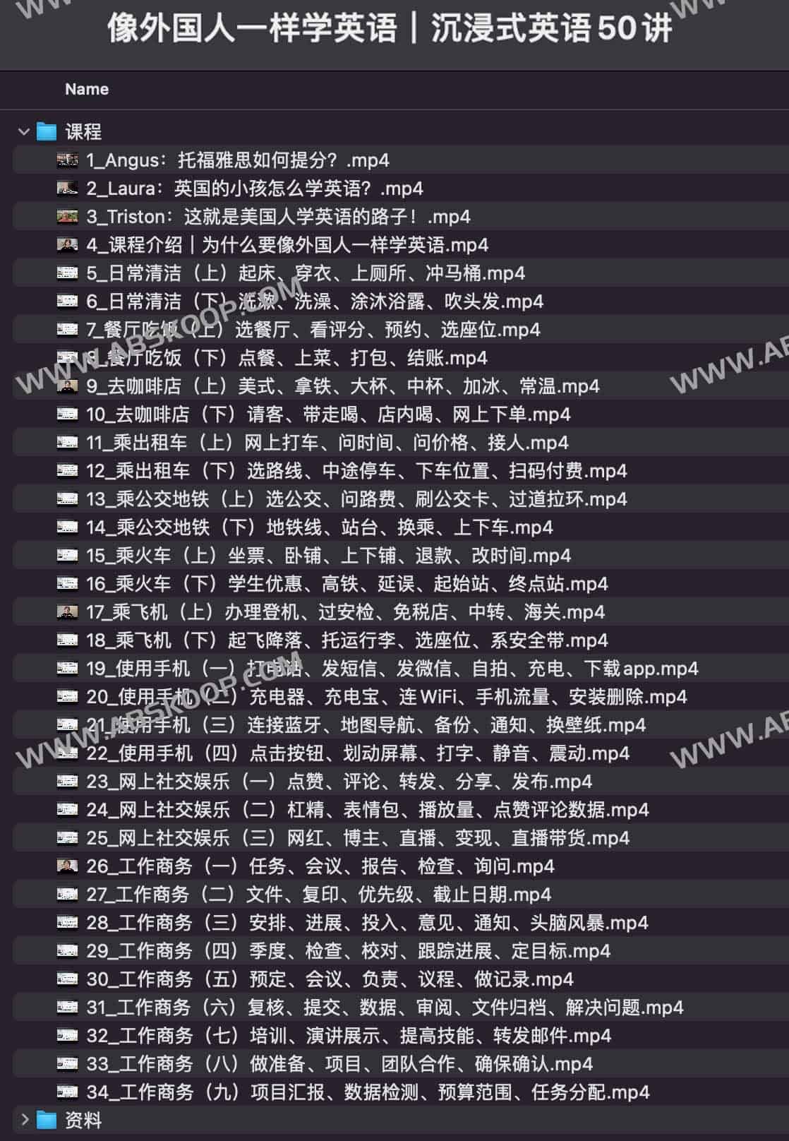 课程信息 像外国人一样学英语 沉浸式英语50讲 马正扬Ma+资料,夸克网盘资源下载。 课程介绍 马正扬Ma的沉浸式英语50讲是一种创新的英语学习方法,它通过模拟真实场景、强调语言实用性、鼓动主动思考和创造以及融入文化元素,帮助学习者像外国人一样自然地学习英语。 这种方法不仅能够提高学习者的英语水平,还能够增强他们的跨文化交际能力,为他们在国际舞台上的沟通打下坚实的基础。 课程大纲 课程下载 下载地址:夸克网盘 更多英语学习资源合集 更多夸克网盘资源合集 更多阿里云盘资源合集 文章导航 高中英语单词思维导图记忆2024年中考英语复习资料大全