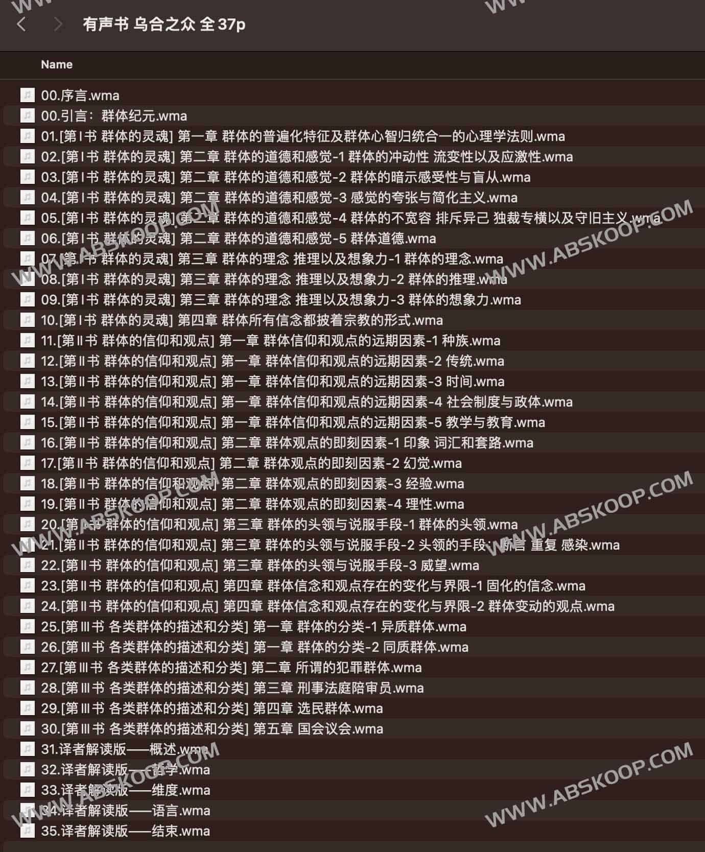 有声书 乌合之众 全37p,大众心理研究,原作名: The Crowd: A Study of the Popular Mind夸克网盘资源下载。