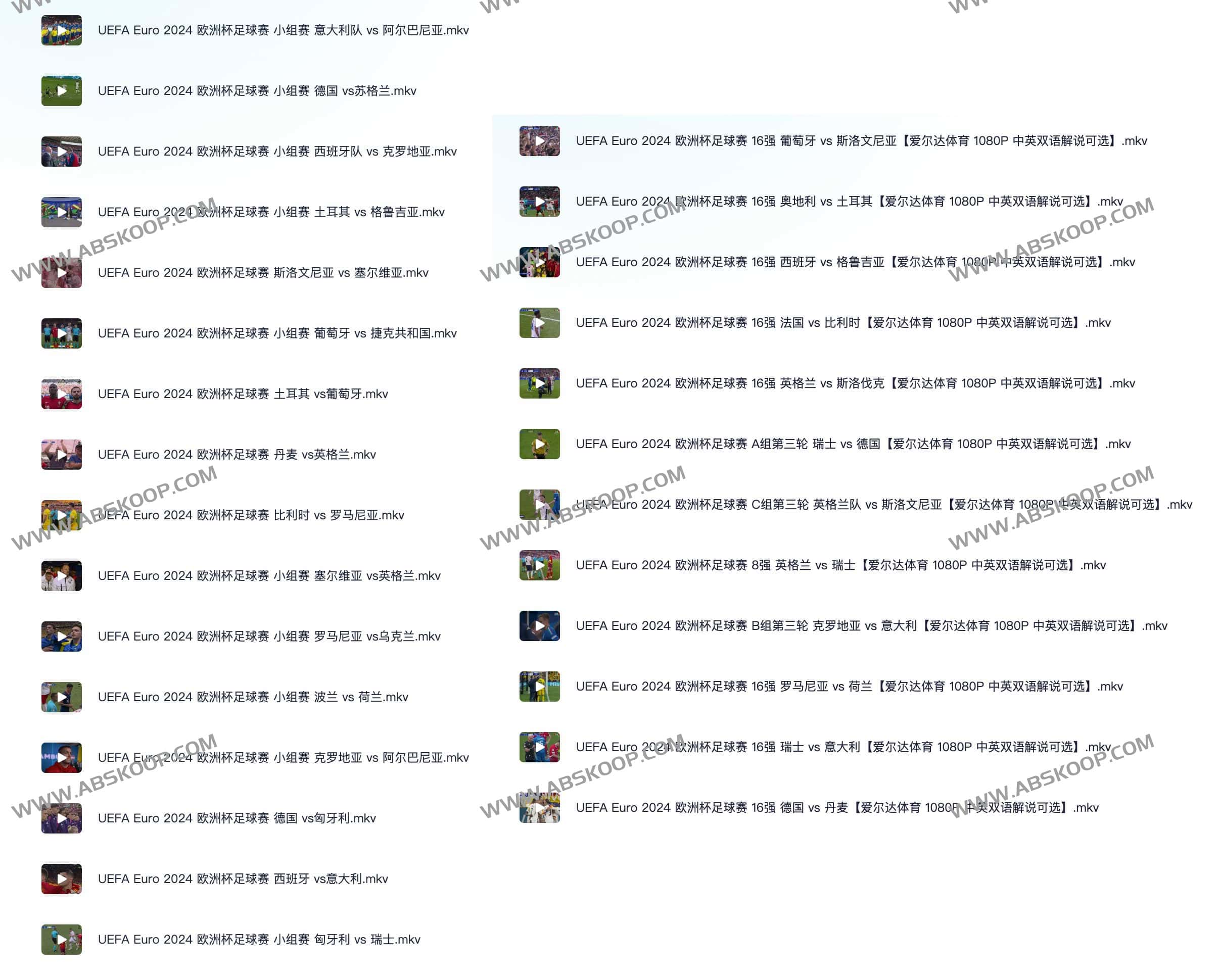 UEFA Euro 2024 欧洲杯足球赛7场比赛,夸克网盘资源下载。