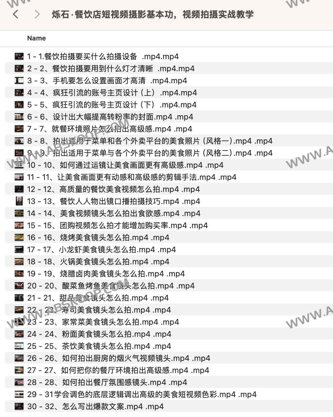 烁石·餐饮店短视频摄影基本功,视频拍摄实战教学,夸克网盘和PikPak网盘资源下载。