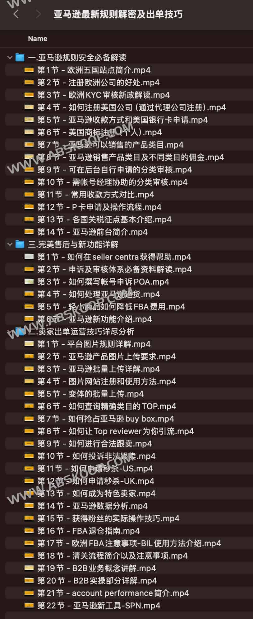 1. 亚马逊规则安全必备解读:包含了如何注册欧洲和美国公司、商标注册、不同国家的关税政策、亚马逊销售产品类目和佣金、以及常用收款方式等方面的讲解。