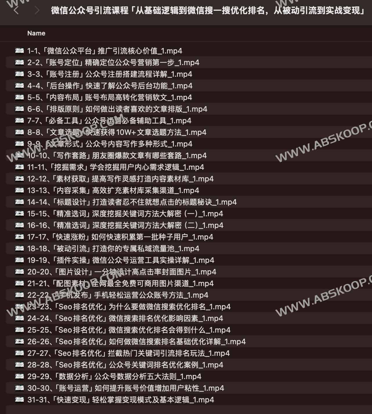 微信公众号引流课程「从基础逻辑到微信搜一搜优化排名,从被动引流到实战变现」,夸克网盘资源下载。