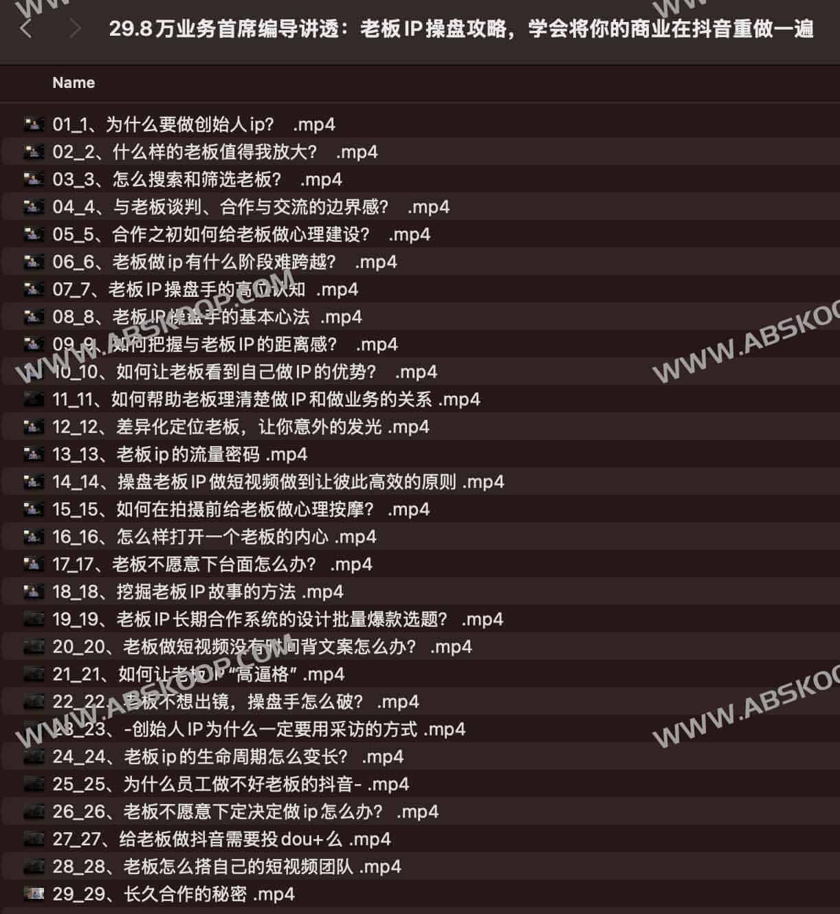 29.8万业务首席编导讲透:老板IP操盘攻略,学会将你的商业在抖音重做一遍,夸克网盘资源下载。